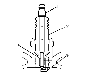 * Inspect for a broken, worn, or loose center electrode (4) by shaking the spark plug.