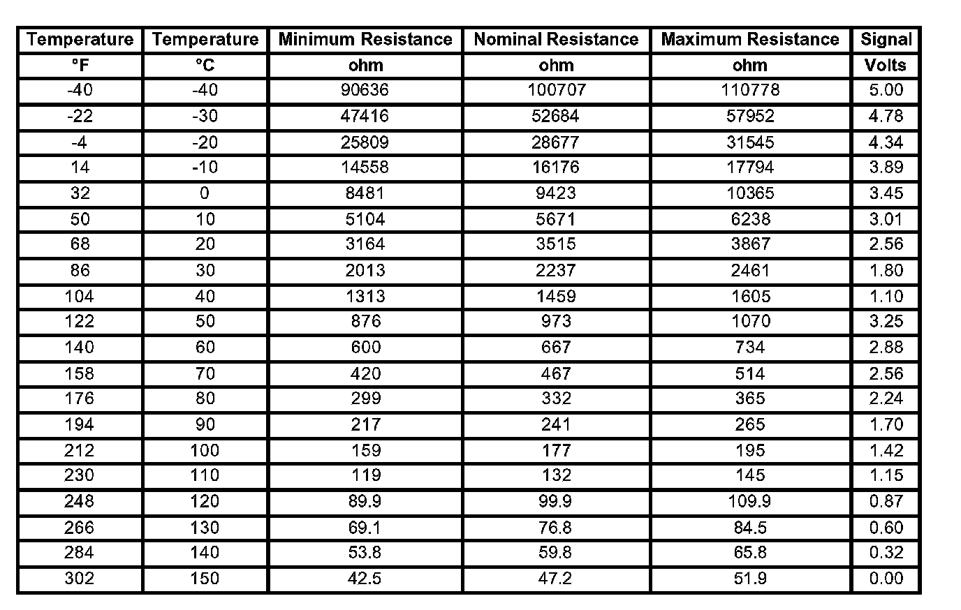 Transmission Fluid Temperature Sensor Specifications