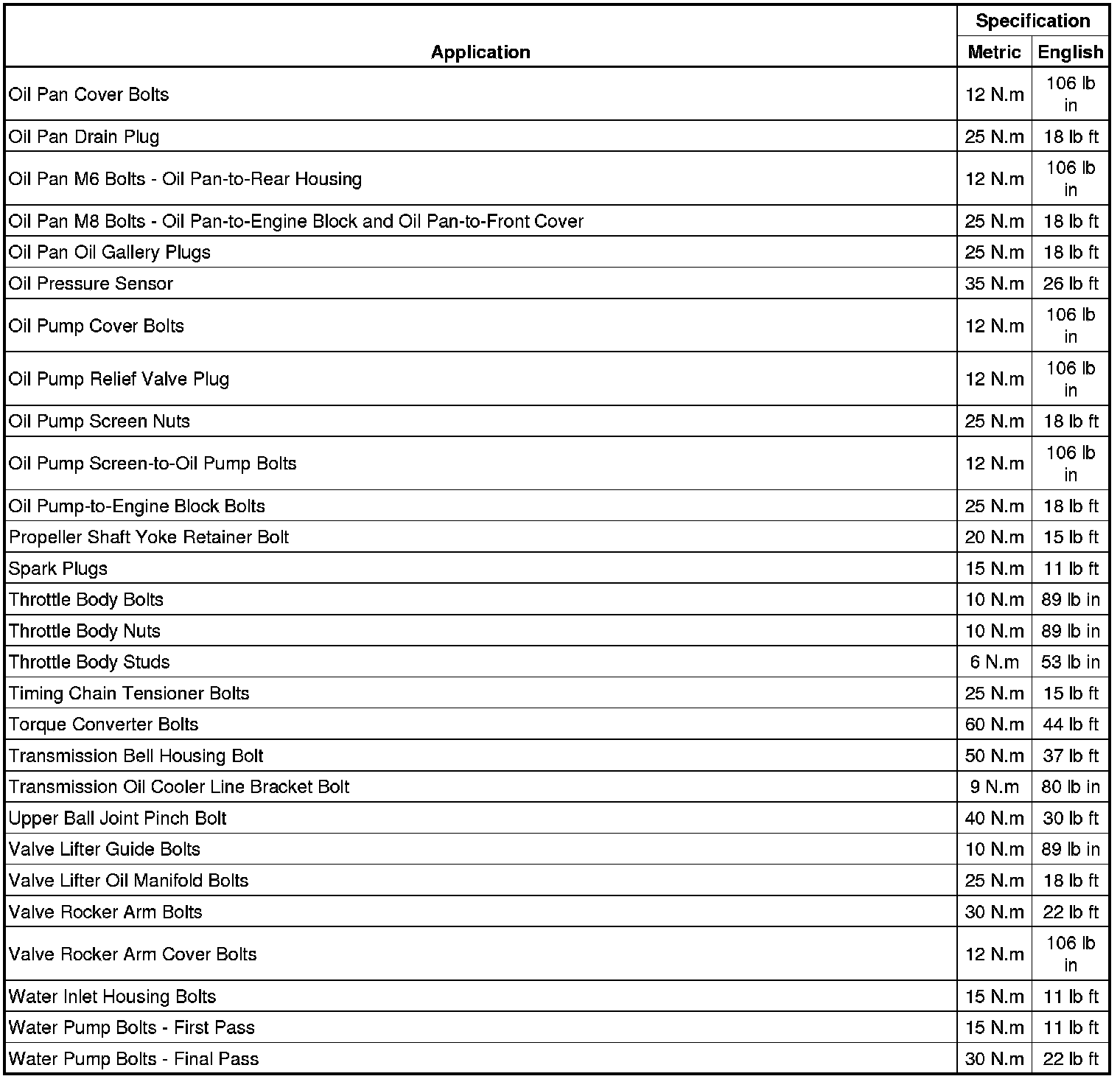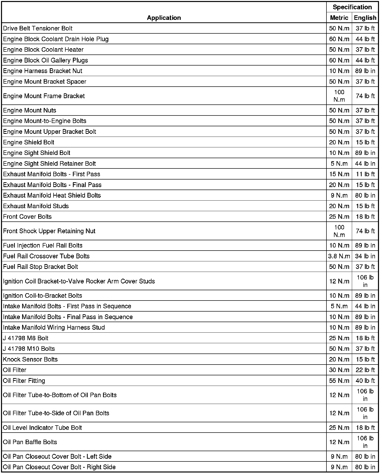 Torque Specifications