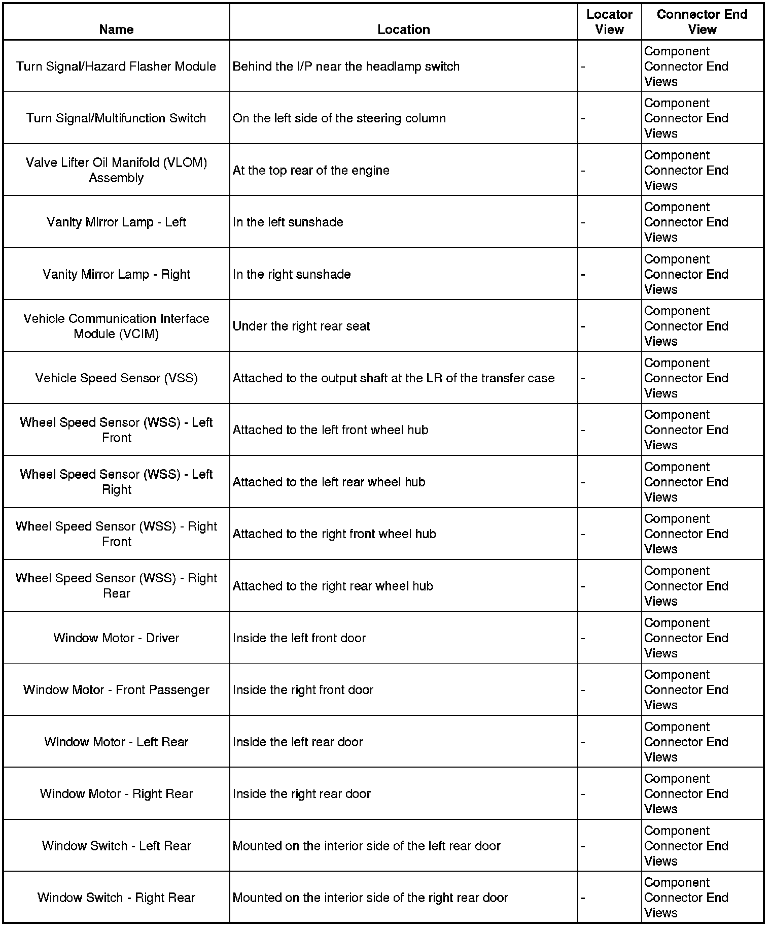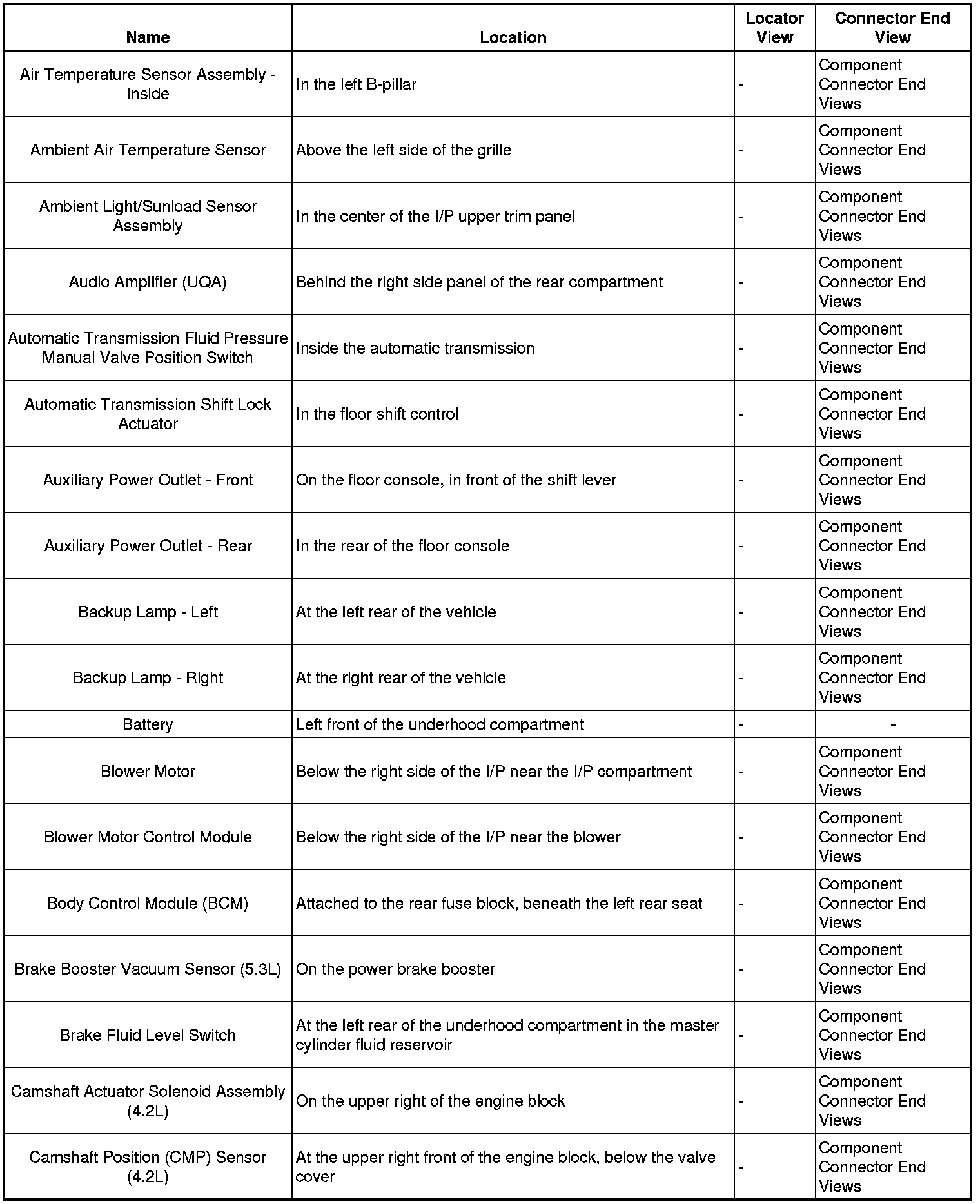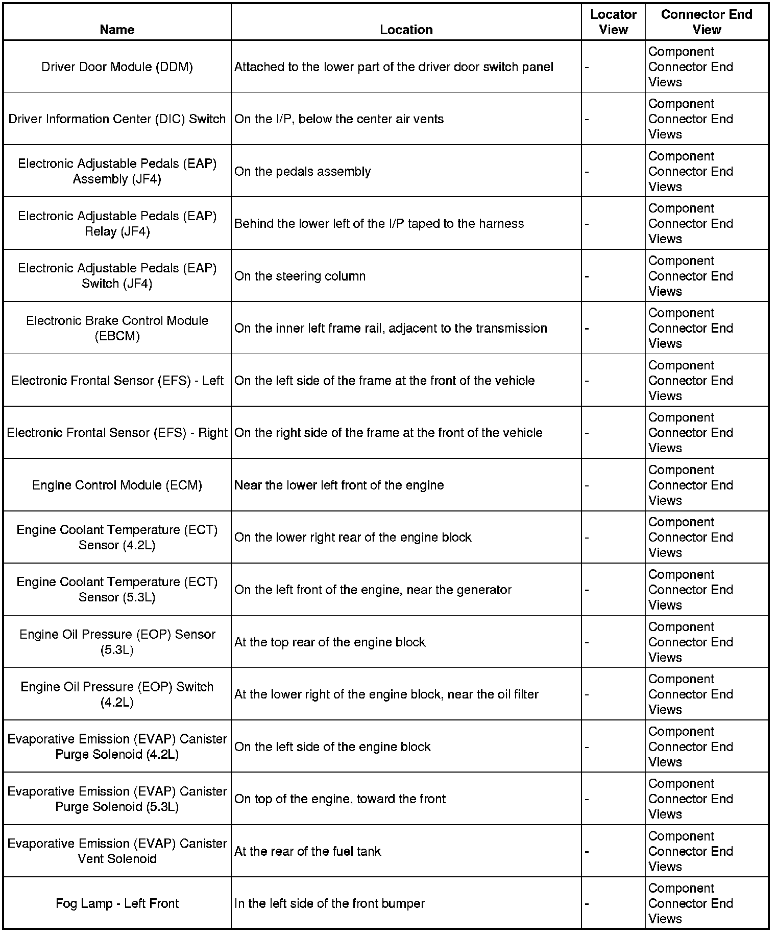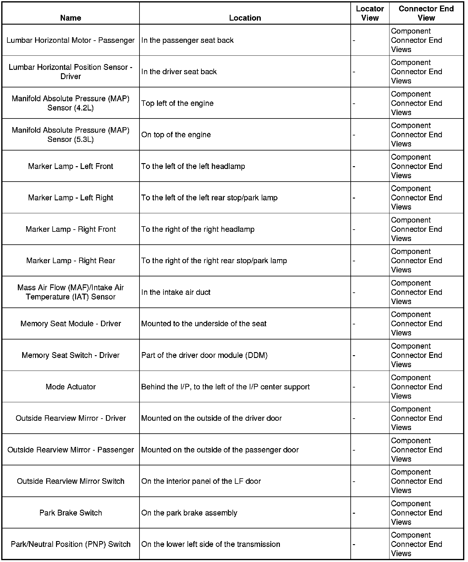 Master Electrical Component List