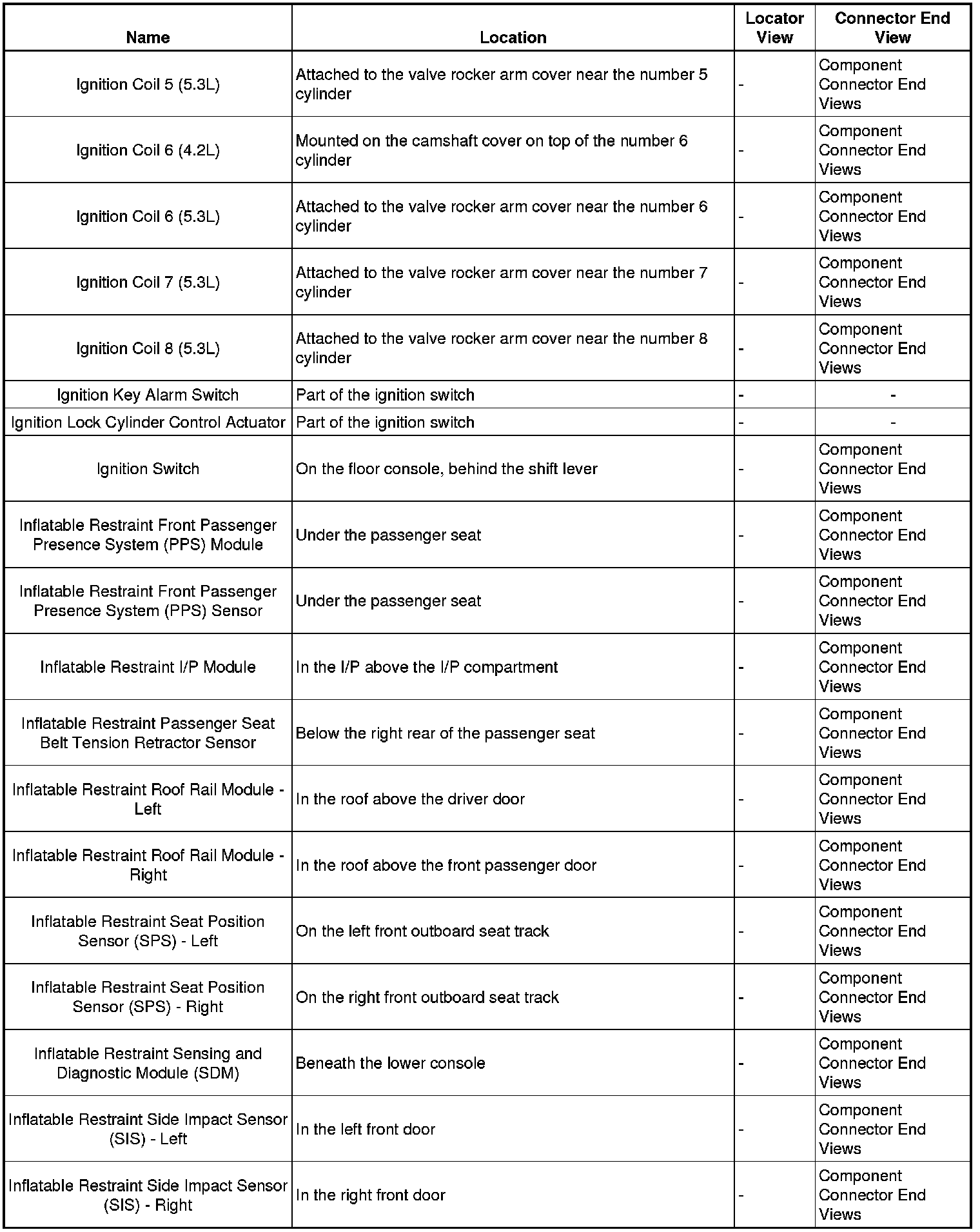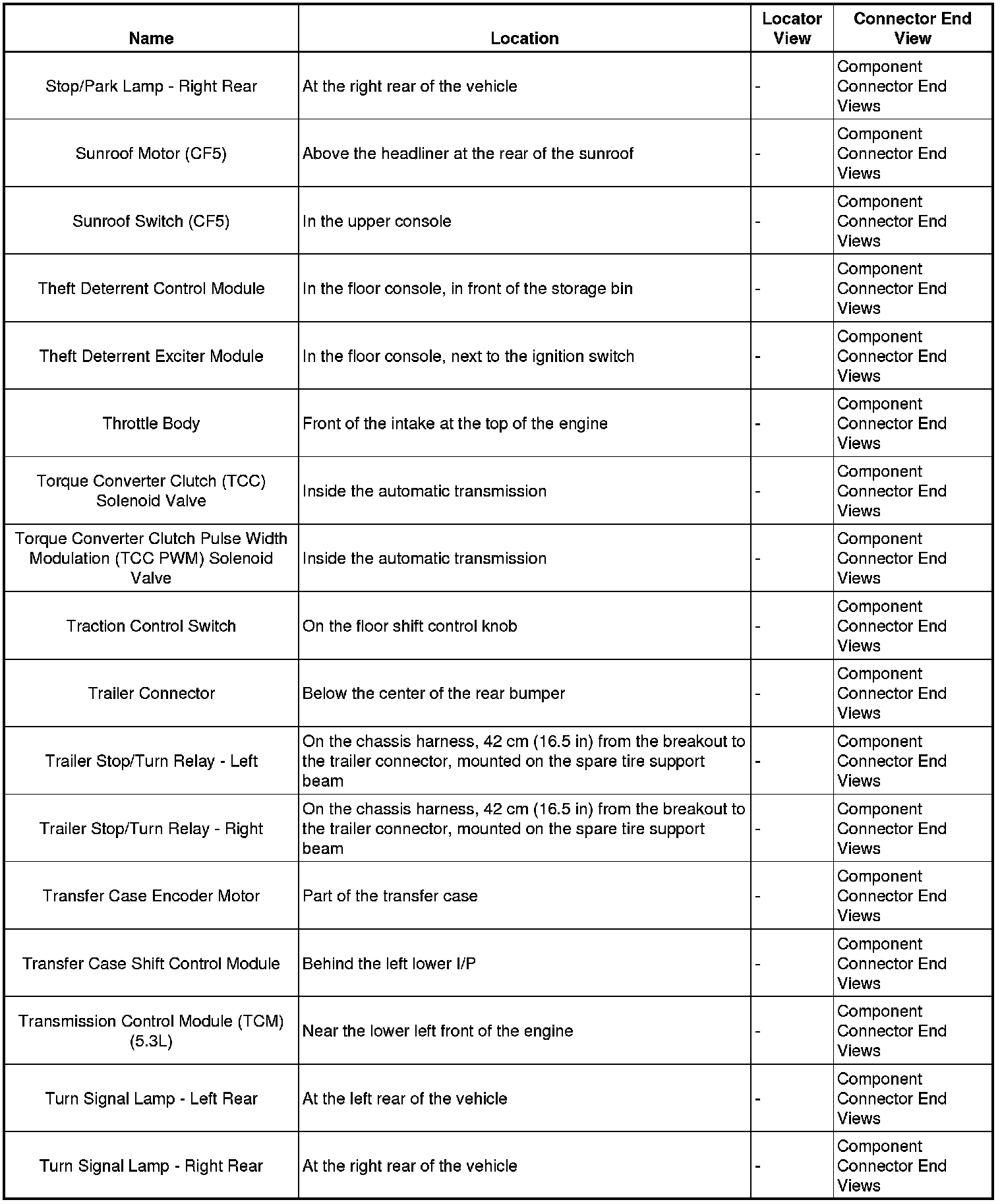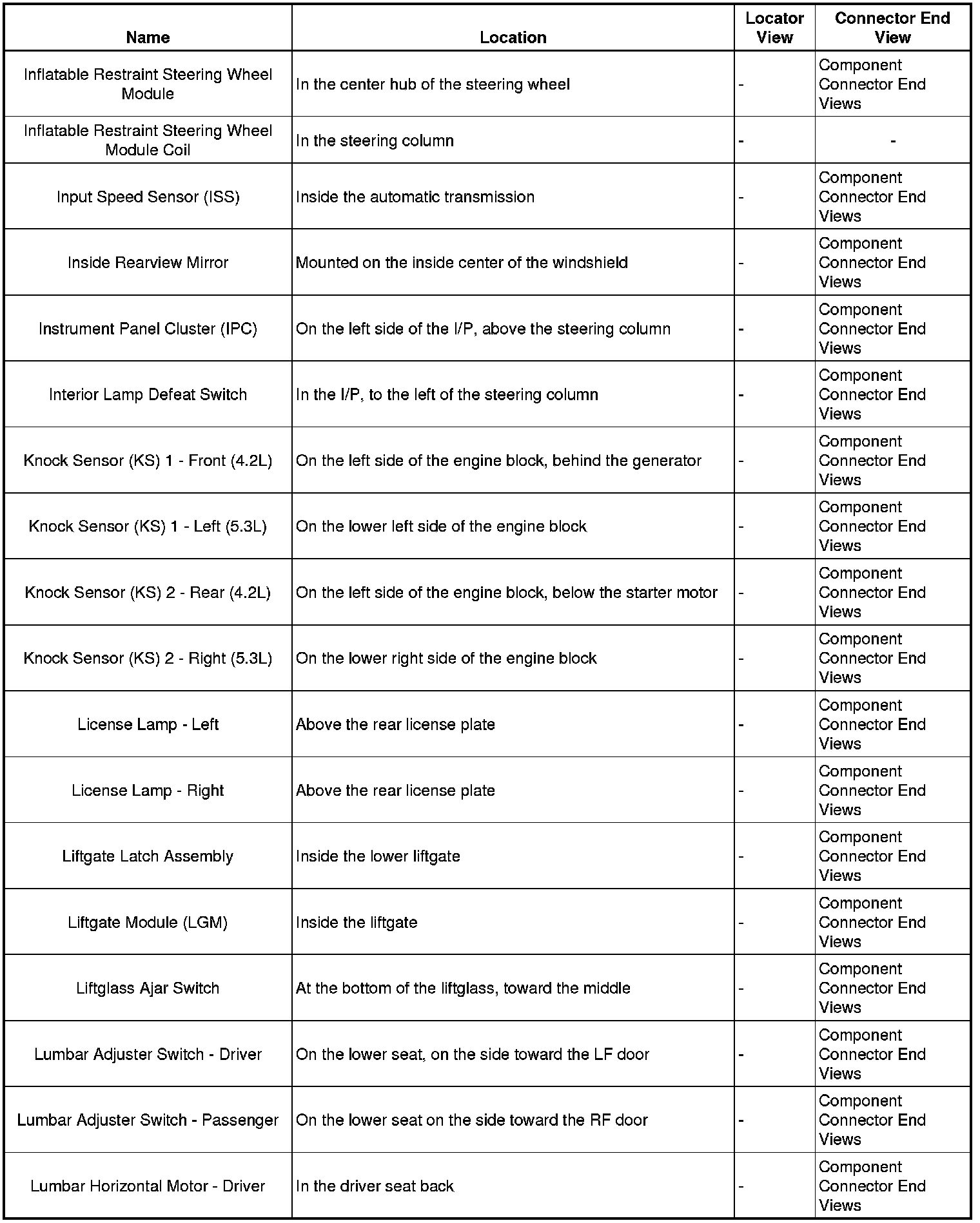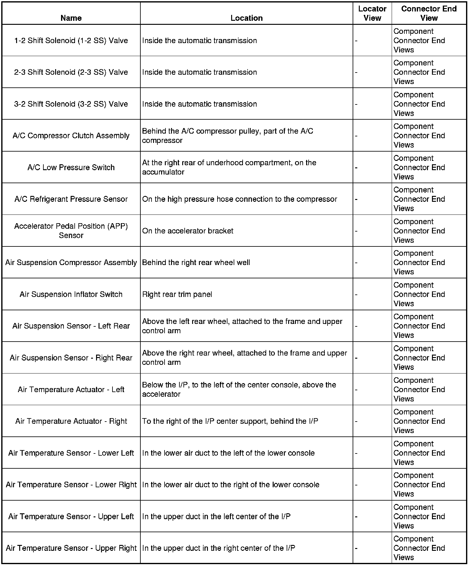 Master Electrical Component List