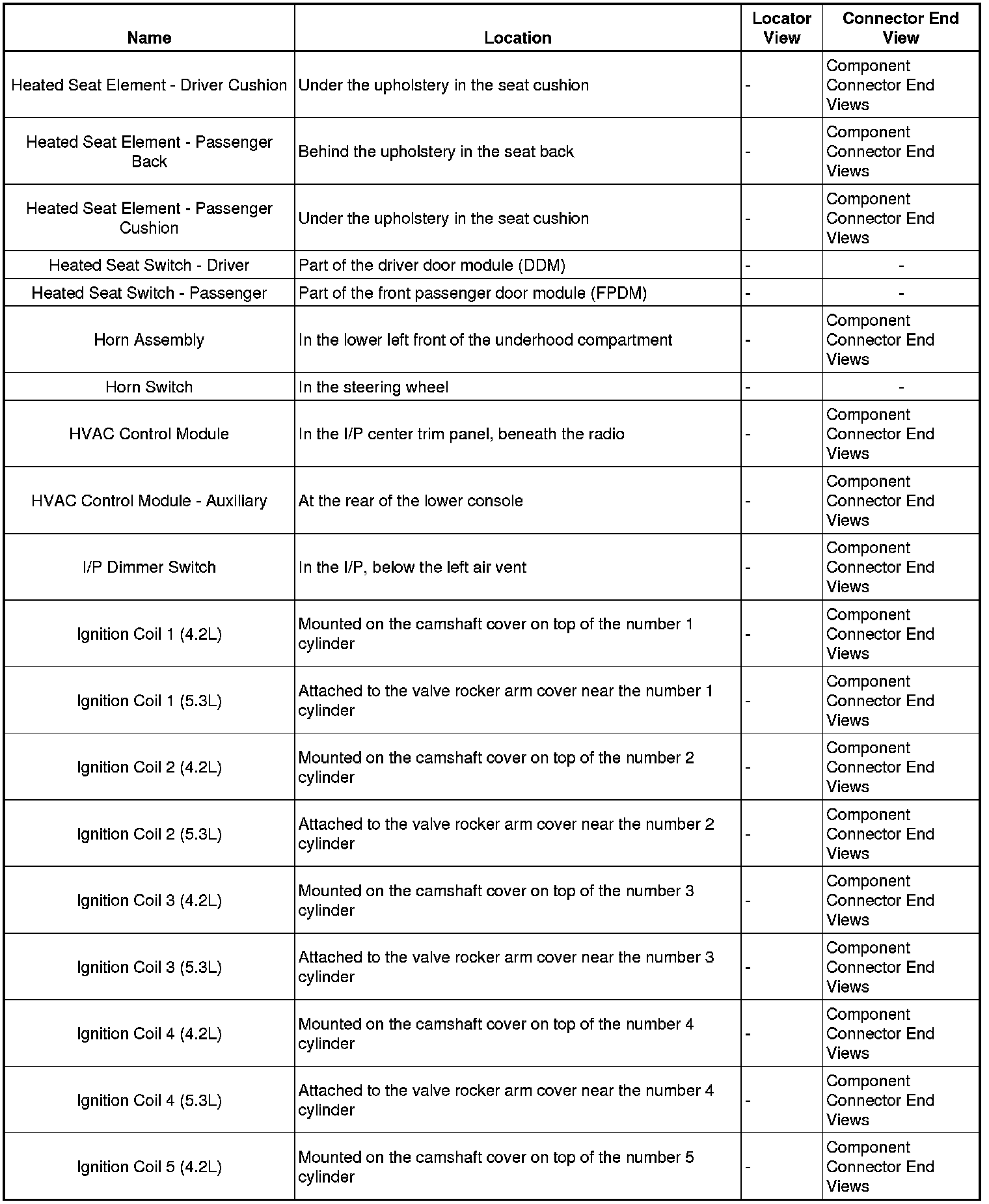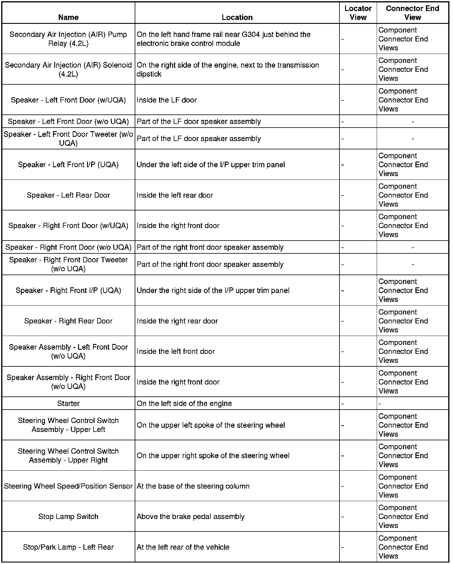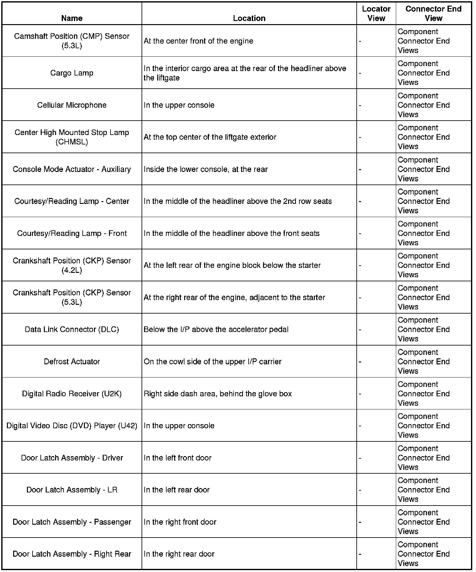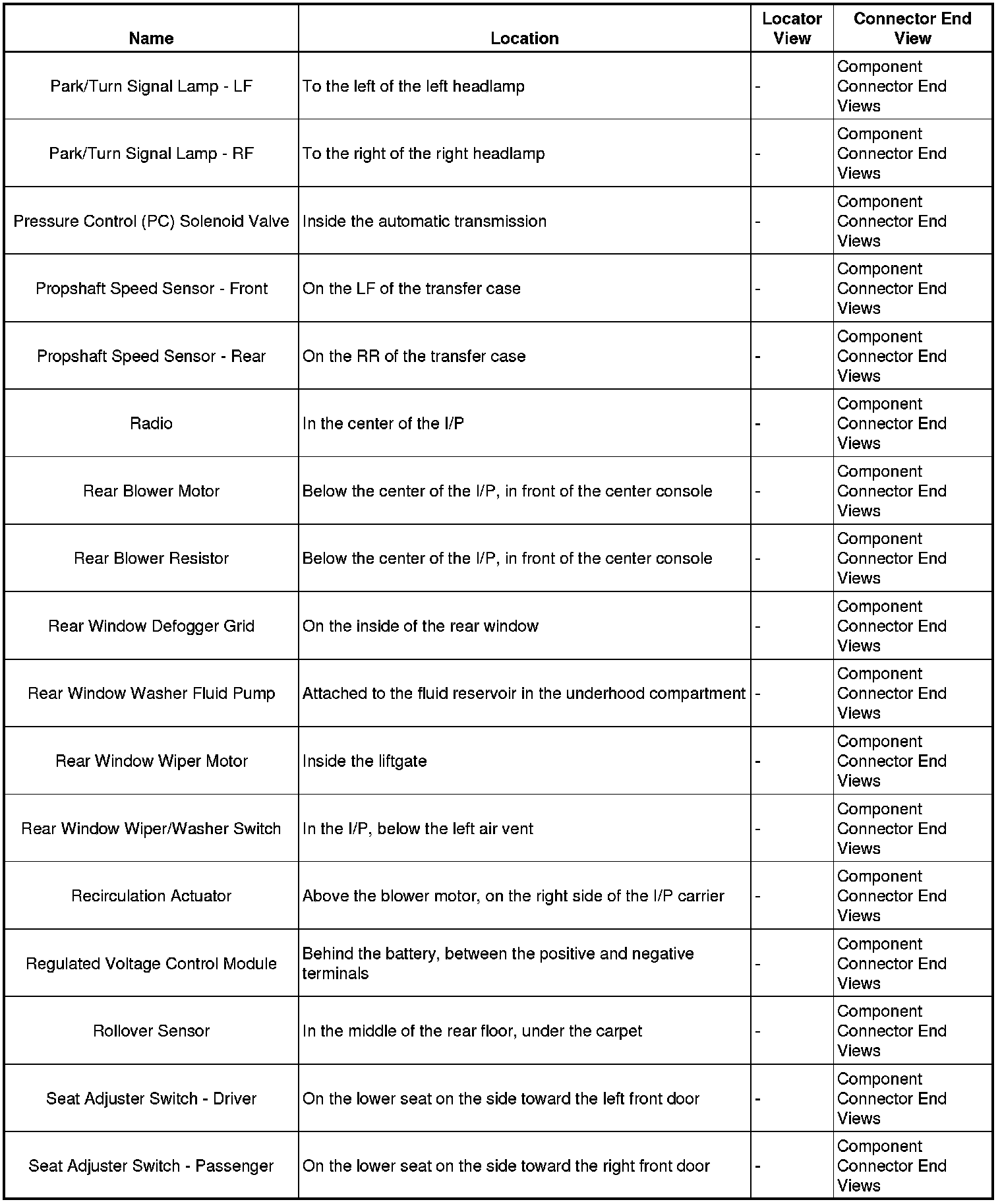 Master Electrical Component List