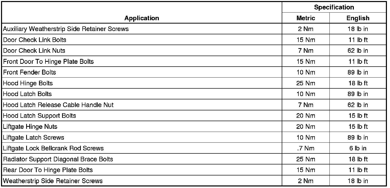 Fastener Tightening Specifications