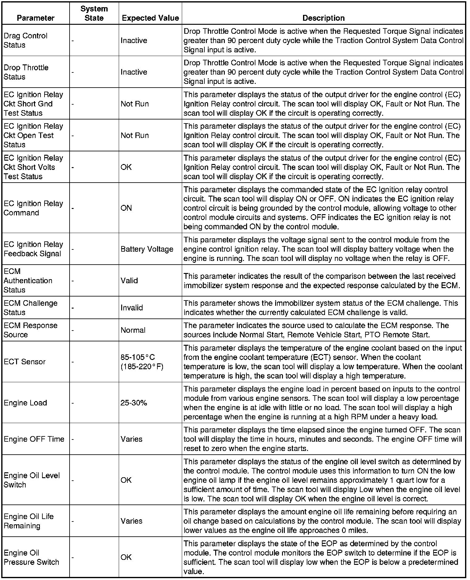The Engine Control Module Scan Tool Data List contains all engine-related parameters that are available on the scan tool. The list is arranged in alphabetical order. A given parameter may appear in any one of the data lists, and in some cases may appear more than once, or in more than one data list in order to group certain related parameters together.