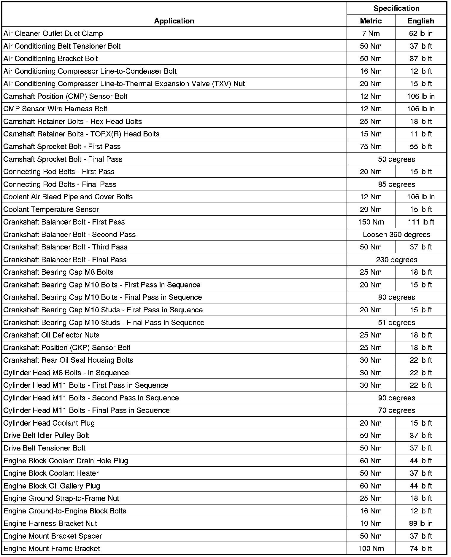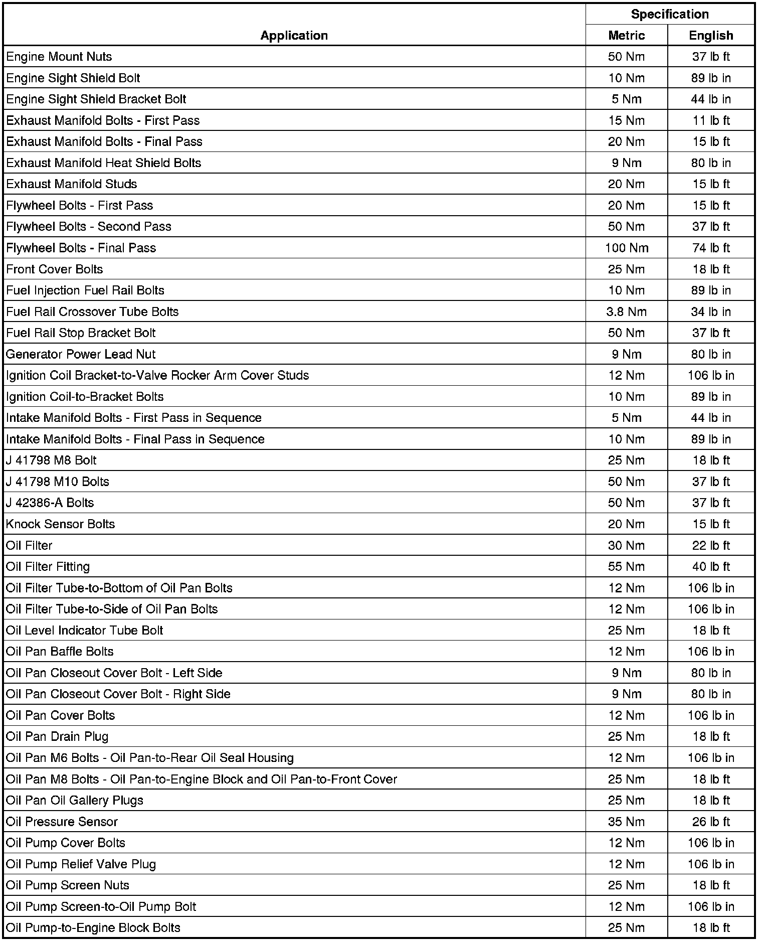 Torque Specifications