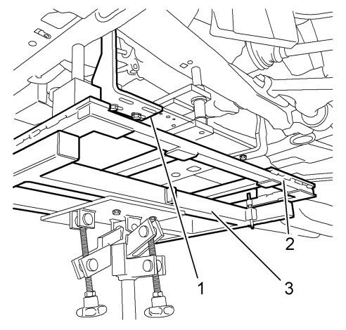4. Install the 2 front frame to body bolts and tighten to 100 Nm (74 lb ft) plus 90 degrees.