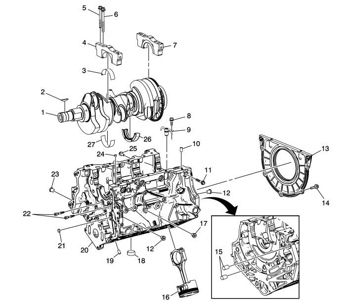 (14) Crankshaft Rear Oil Seal Housing Assembly Bolt