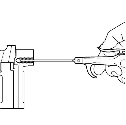 6. Spray cleaner into the tapped hole. Refer to Adhesives, Fluids, Lubricants, and Sealers for recommended cleaner.