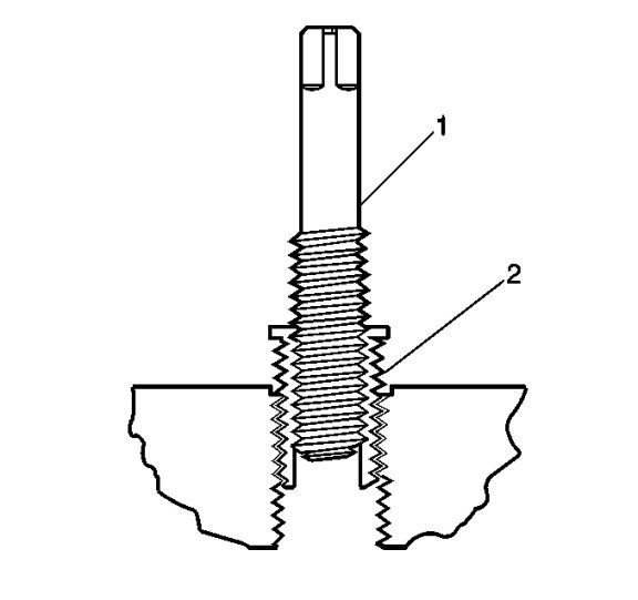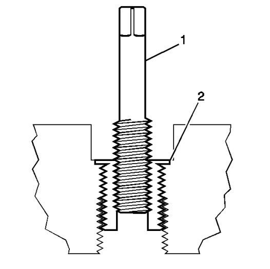 14. Inspect the insert (1) for proper installation (2) into the tapped hole.