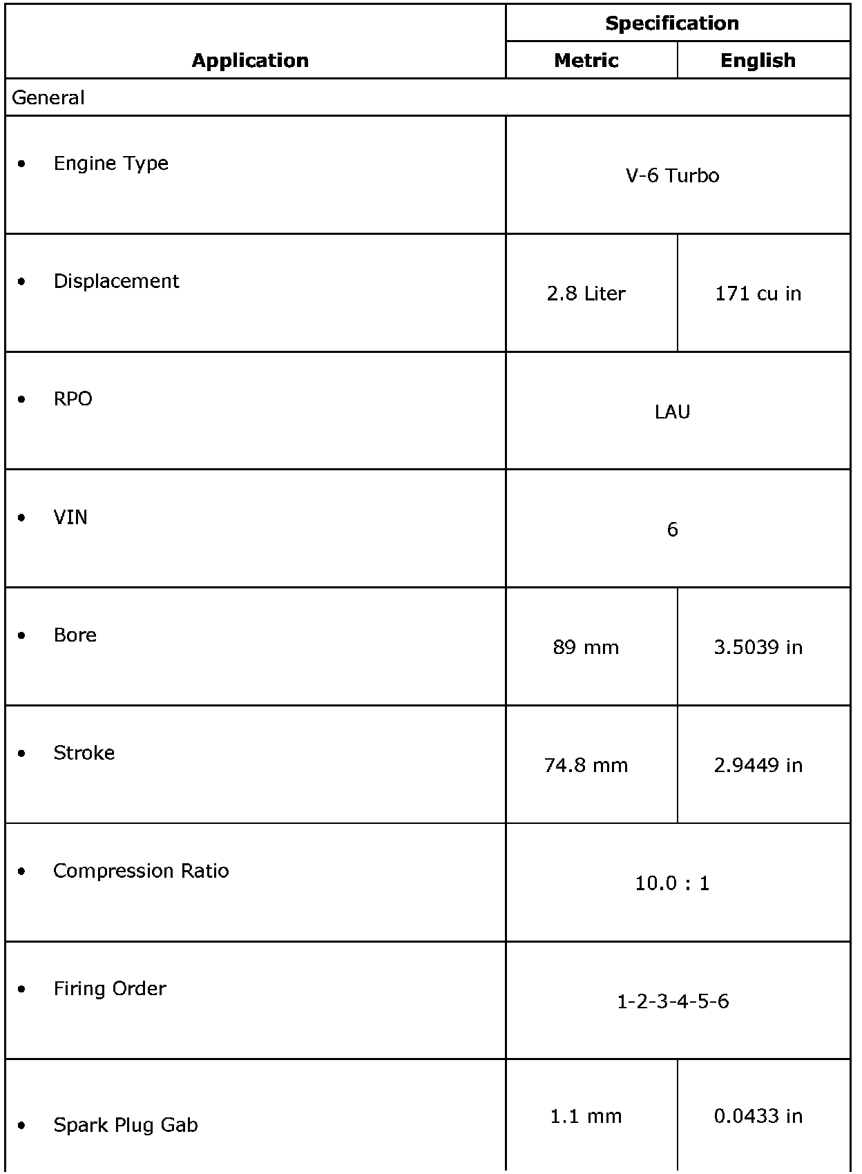 Engine Mechanical Specifications (LAU or LBW)