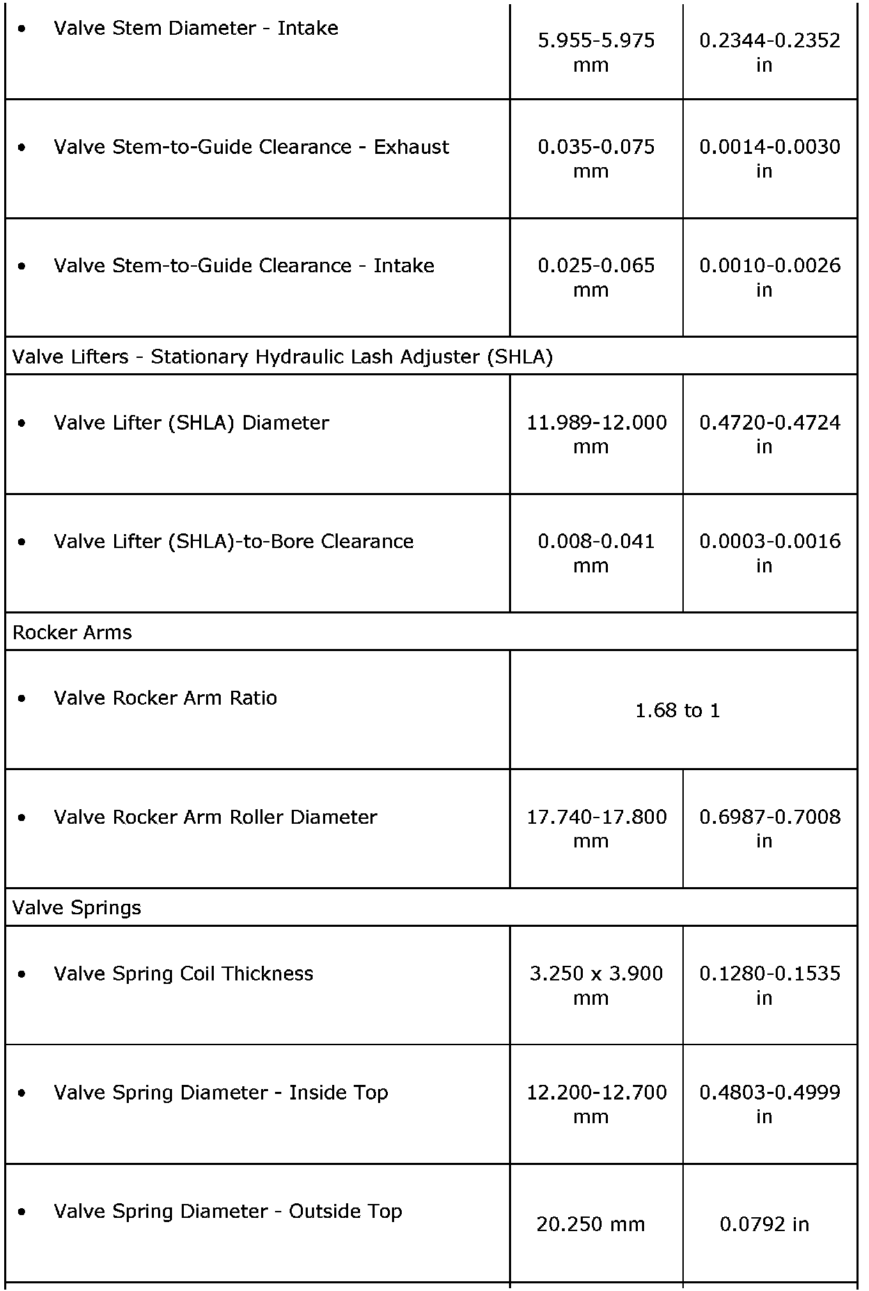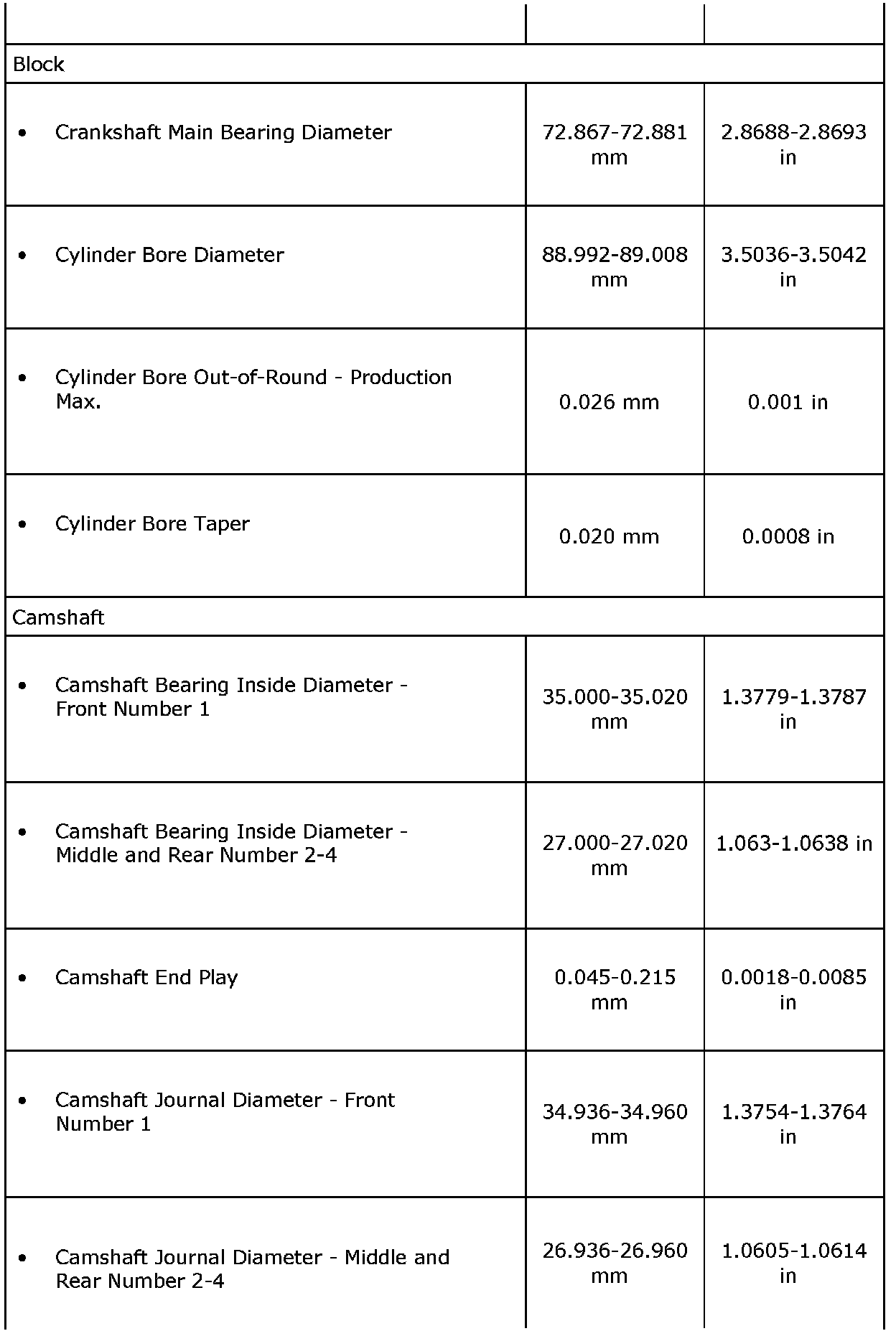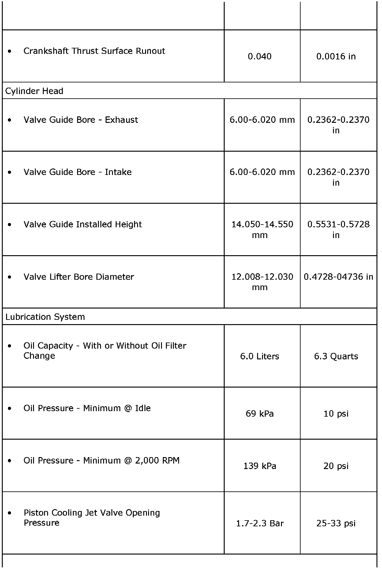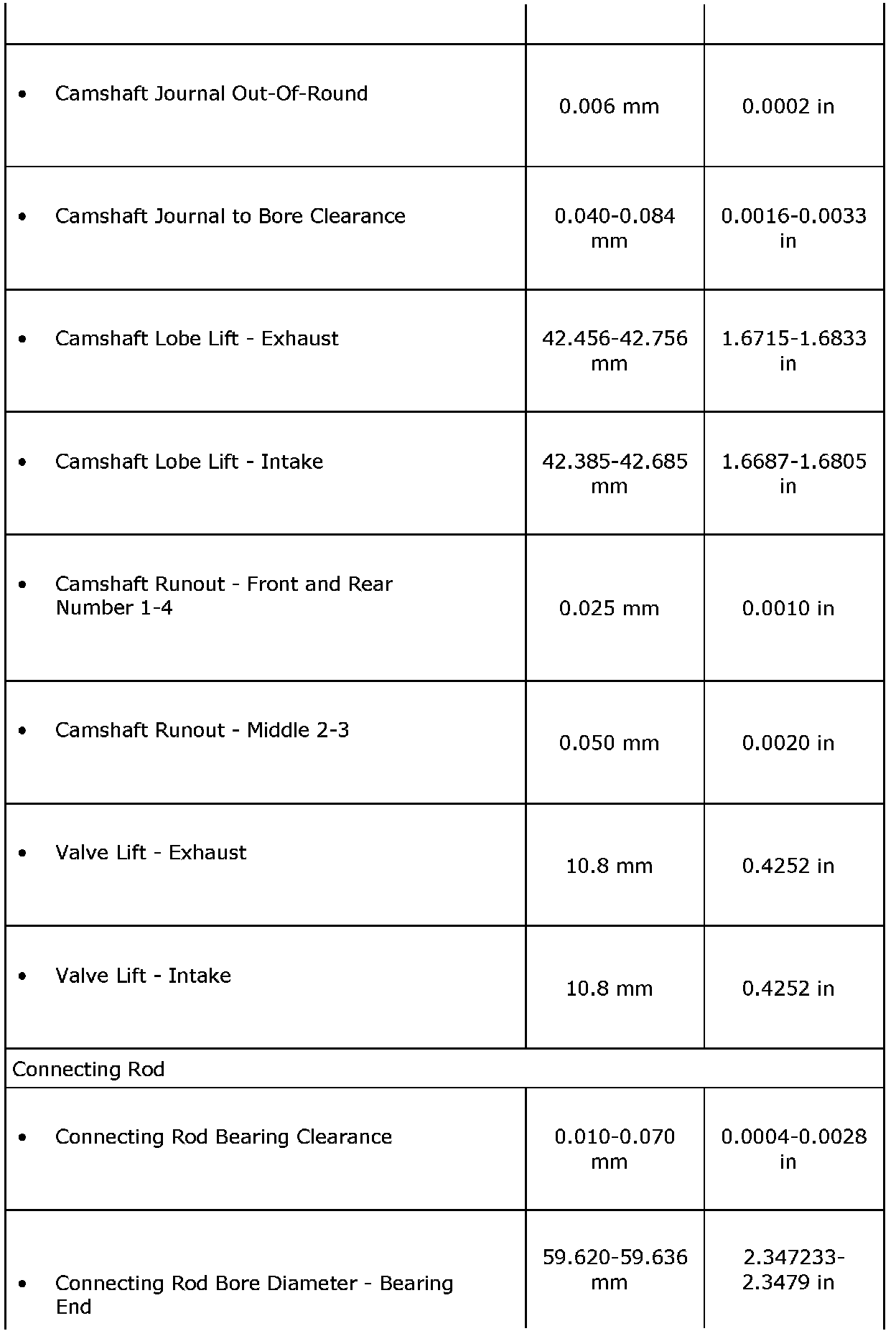 Engine Mechanical Specifications