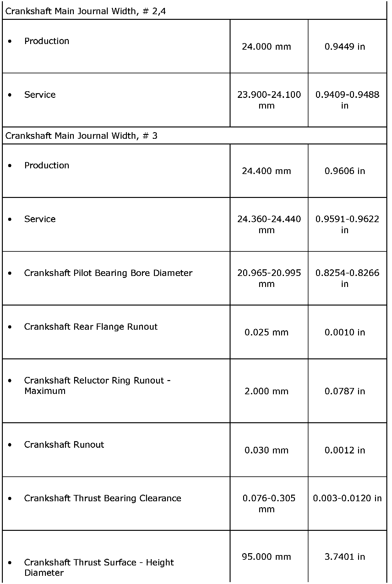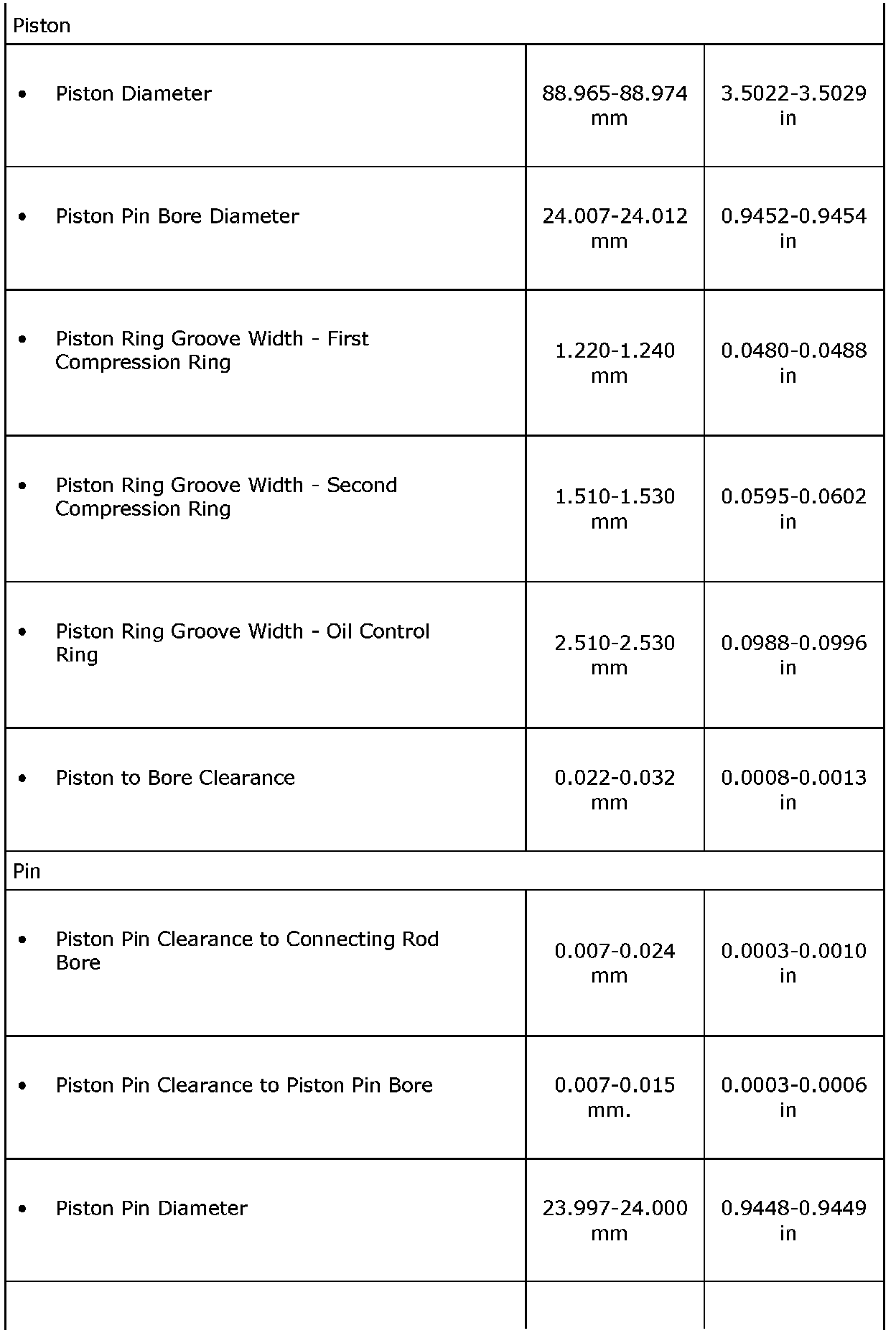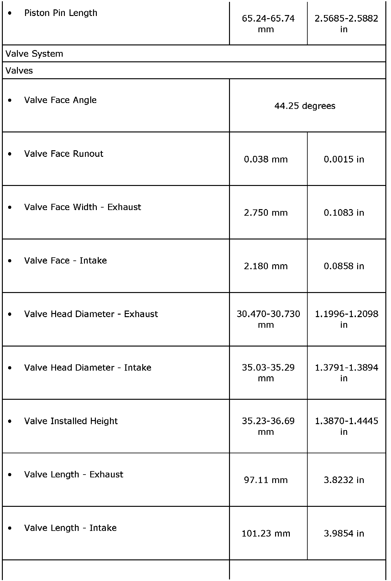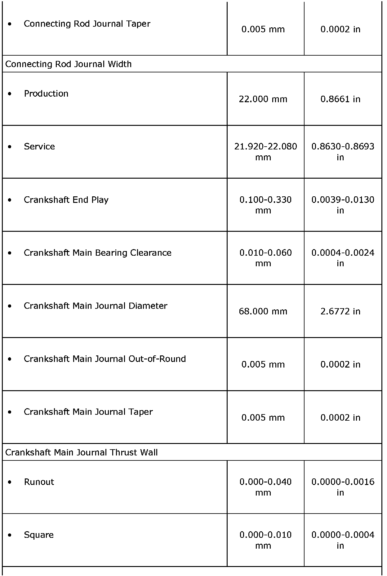 Engine Mechanical Specifications