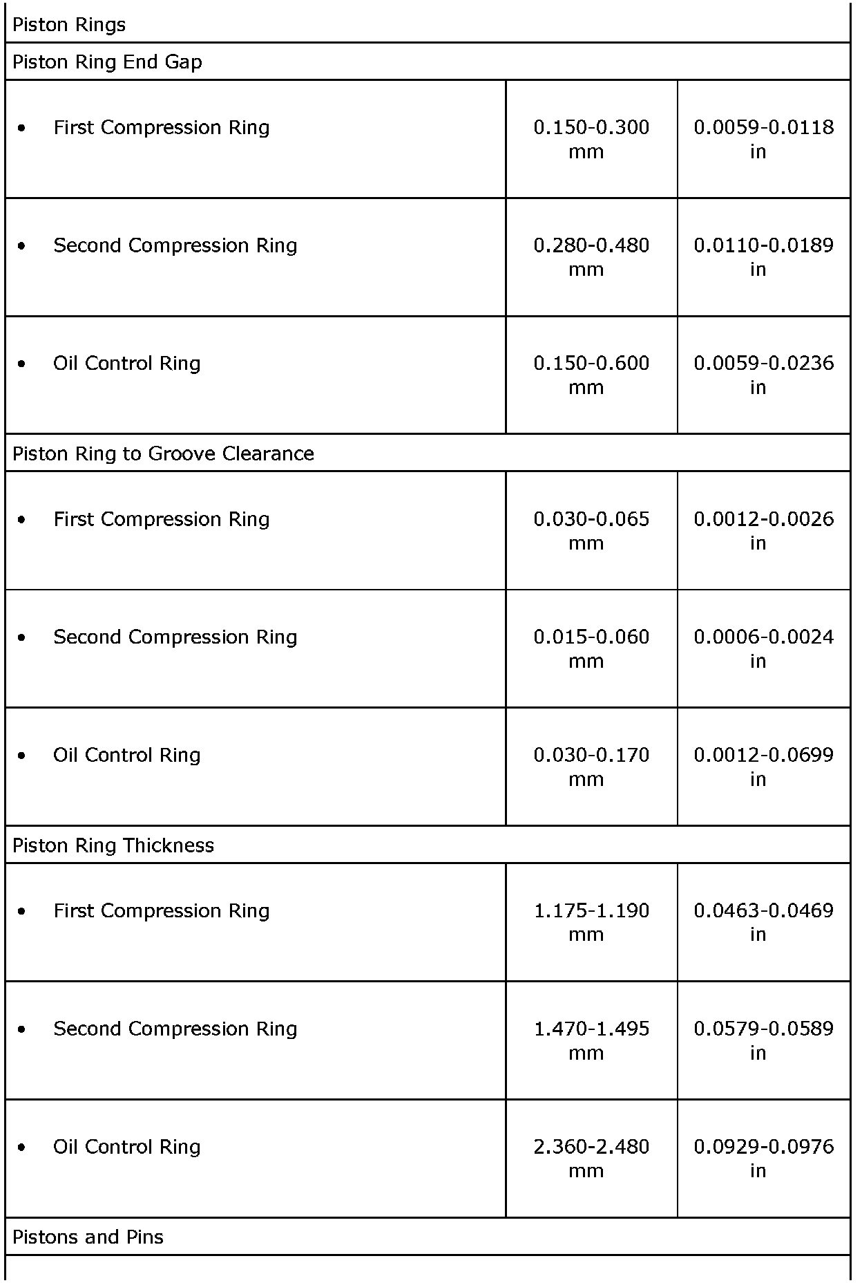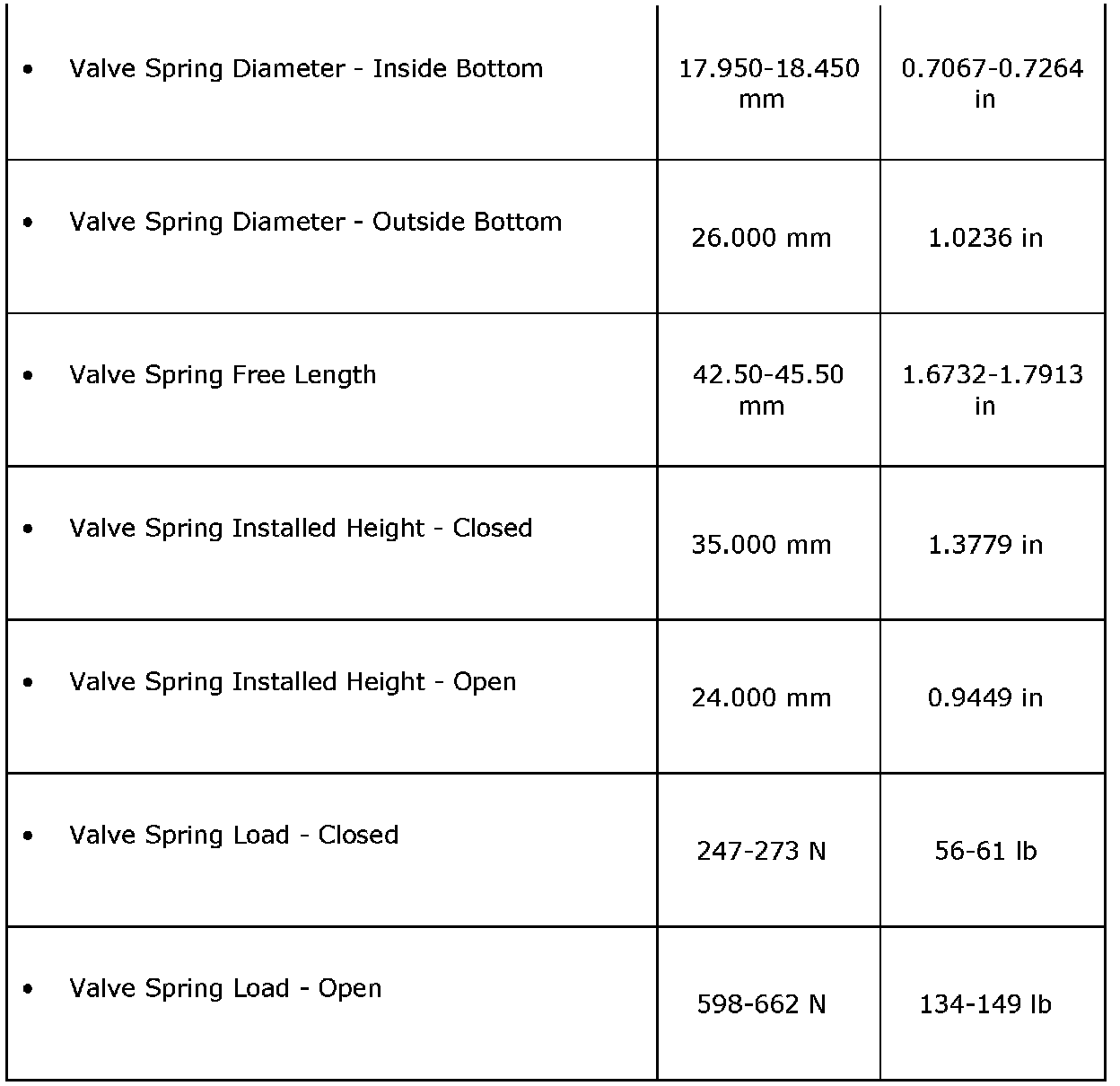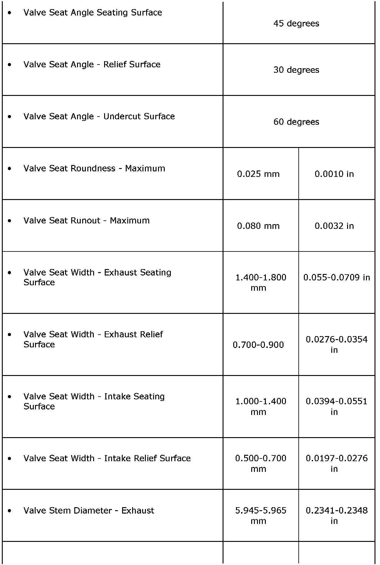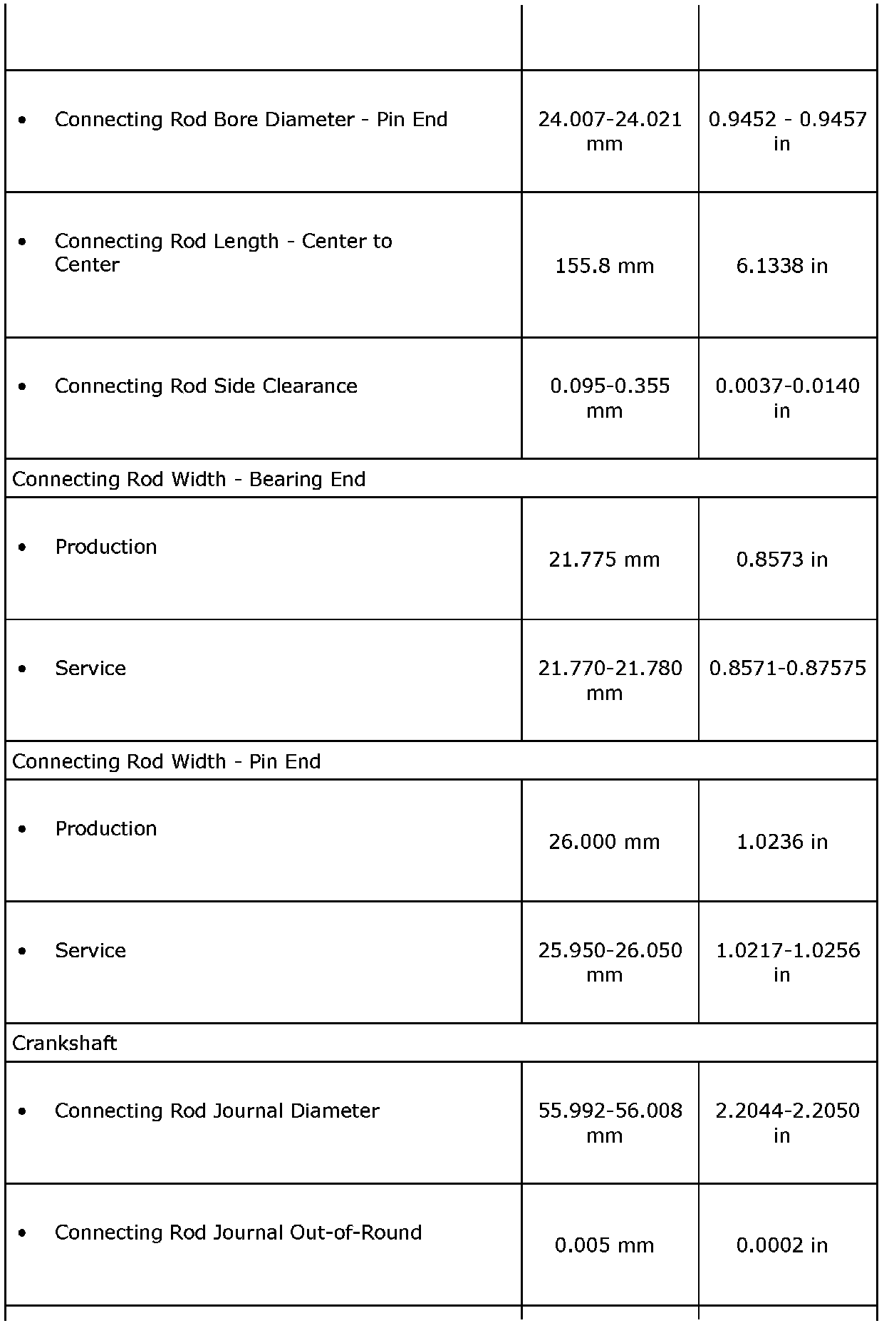 Engine Mechanical Specifications