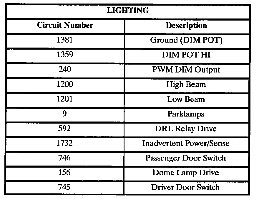 Circuit assignments for the body control module (BCM) relating to lighting: