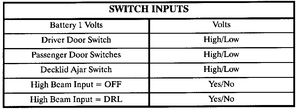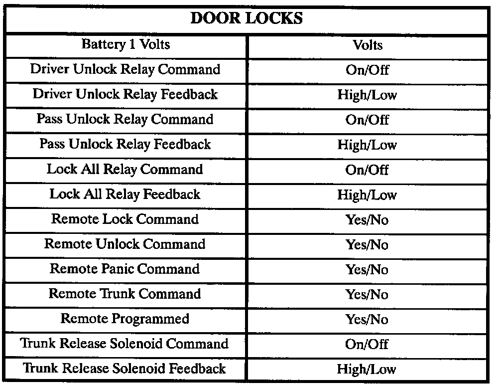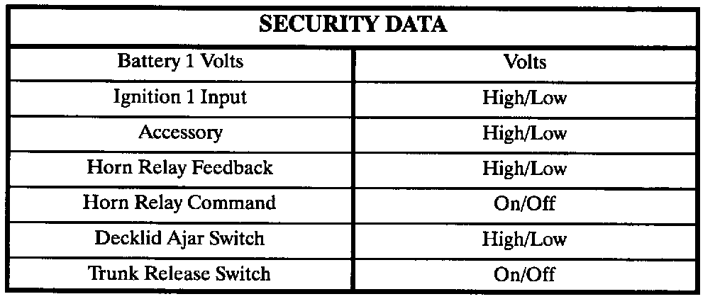 The following tables lists the data directly related to the RKE/security system only.