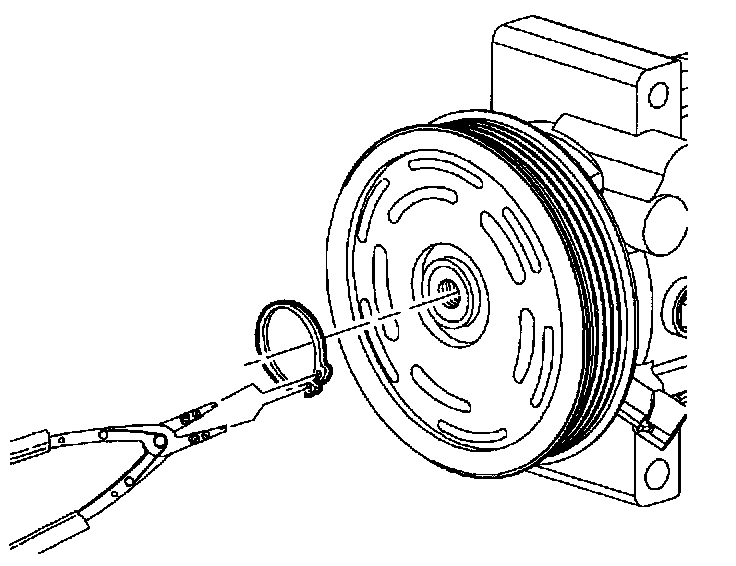 NOTE: Do not remove pulley without puller adapter. If A/C compressor shaft is pressed on, A/C compressor will be damaged.