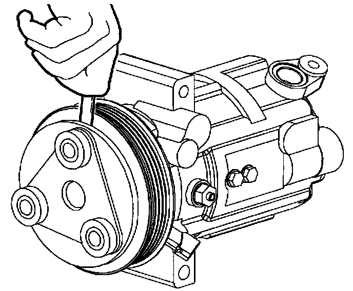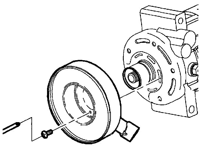 7. Remove A/C compressor clutch coil screws and remove A/C compressor clutch coil.