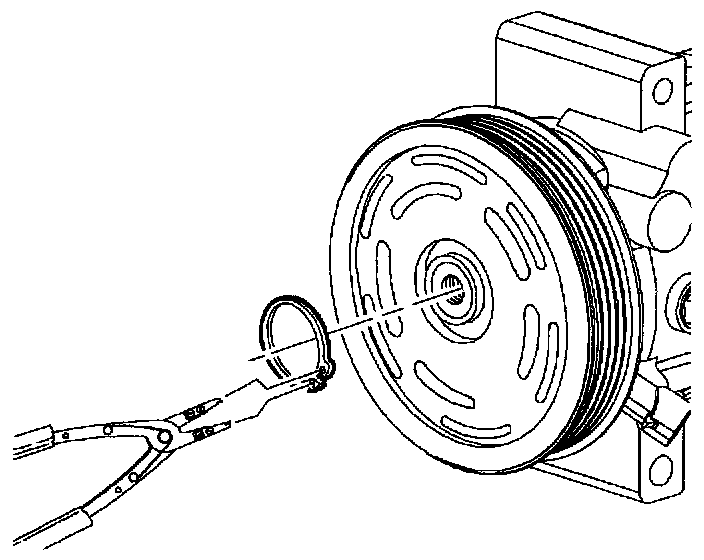 7. Install shims removed from old drive plate into clutch drive plate and install onto compressor shaft.