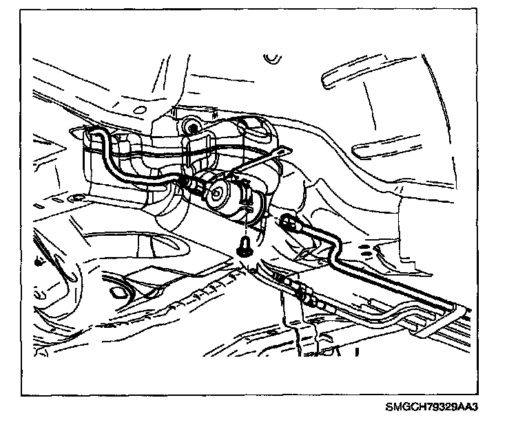 The fuel filter is located on the underbody at the forward edge of the right-side of the fuel tank.