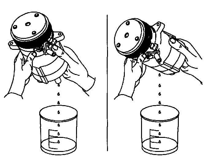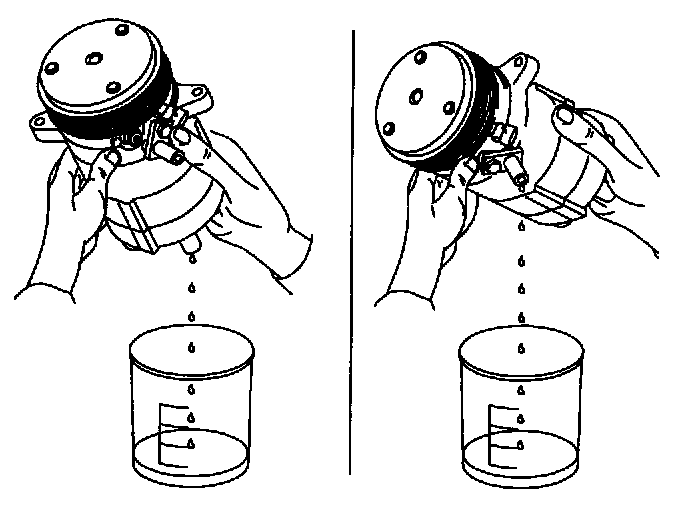 6. Drain the oil from the new A/C compressor into a clean, dry container.