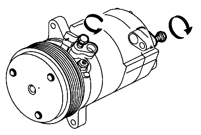 c. Turn the A/C compressor over to drain the oil from the low side port.