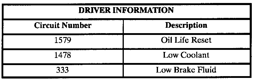 Circuit assignments for the Body Control Module (BCM) relating to driver information: