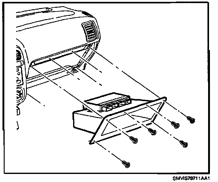 10. Remove BCM module from glove compartment bin by sliding module out of attaching slots.
