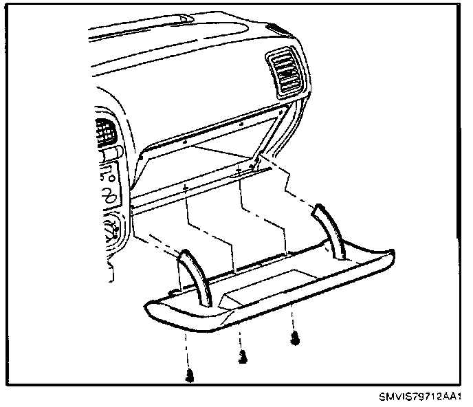 16. Install right side heater outlet with retainer to glove compartment bin.
