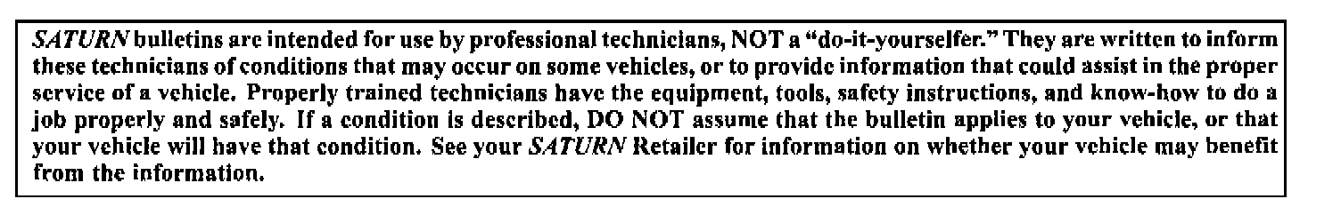 Owners of all involved vehicles will be notified of this recall by Saturn at a later date. (Refer to the owner letter shown in this bulletin)