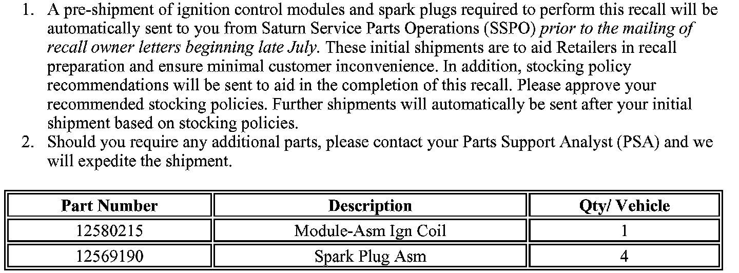 Home >> Saturn >> 2000 >> LW1 L4-2.2L VIN F >> Repair and Diagnosis >> Powertrain Management >> Ignition System >> Ignition Control Module >> Technical Service Bulletins >> Recalls >> Recall - Replace Ignition Control Module >> Overview