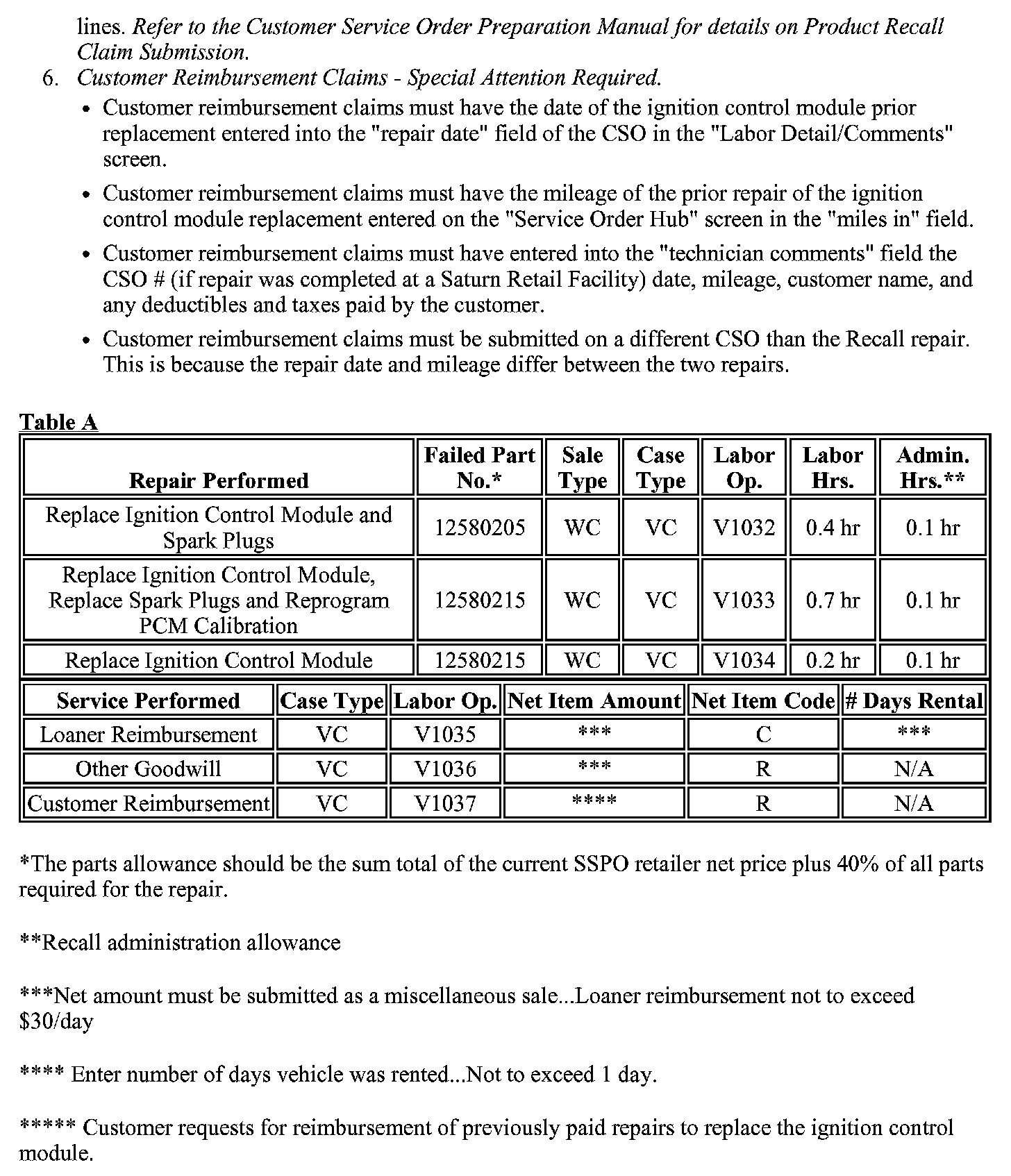 ^ Submit a Recall Vehicle Action Report to your Customer Assistance Manager (CAM) at the Saturn Customer Assistance Center.