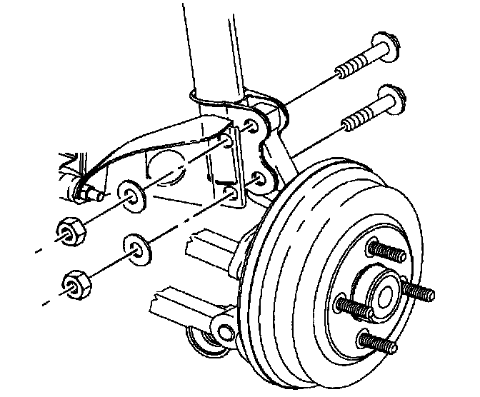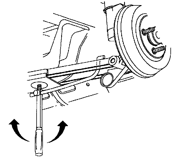 1. Loosen the rear most inboard lateral link to crossmember fastener on one of the rear wheels.