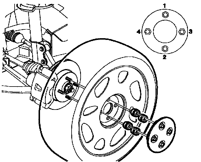6. Install wheel nuts and tighten in a crisscross pattern. Repeat tightening pattern to make sure torque is correct.