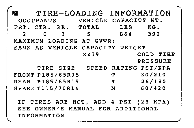 b. 179 kPa (26 psi) tire pressure-Rear Tires.
