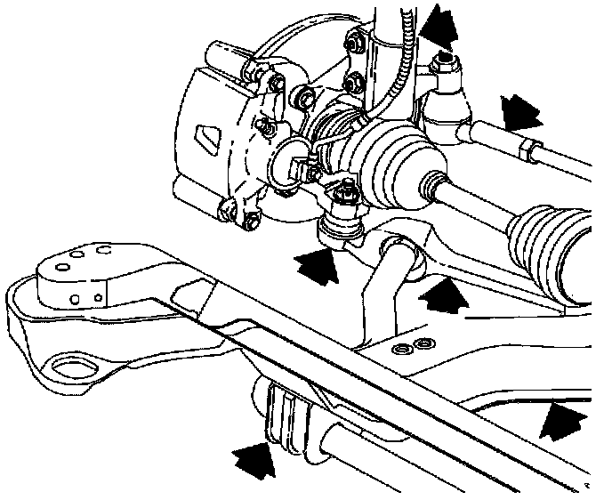 4. Check lower control arms for worn ball studs, worn bushings, or bent arms.