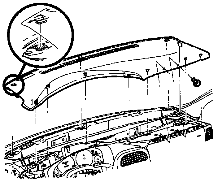 c. Align tabs on sides of upper trim panel with openings in windshield garnish molding.