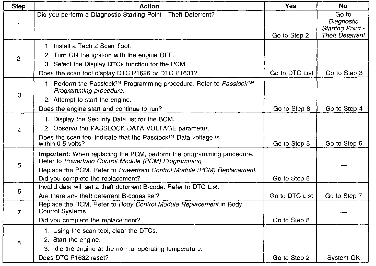 5. Theft deterrent B-code (DTC B2957, B2958, or B2960) may set if Passlock(TM) data voltage is not within specifications. These DTCs should be diagnosed prior to diagnosing DTC P1632.