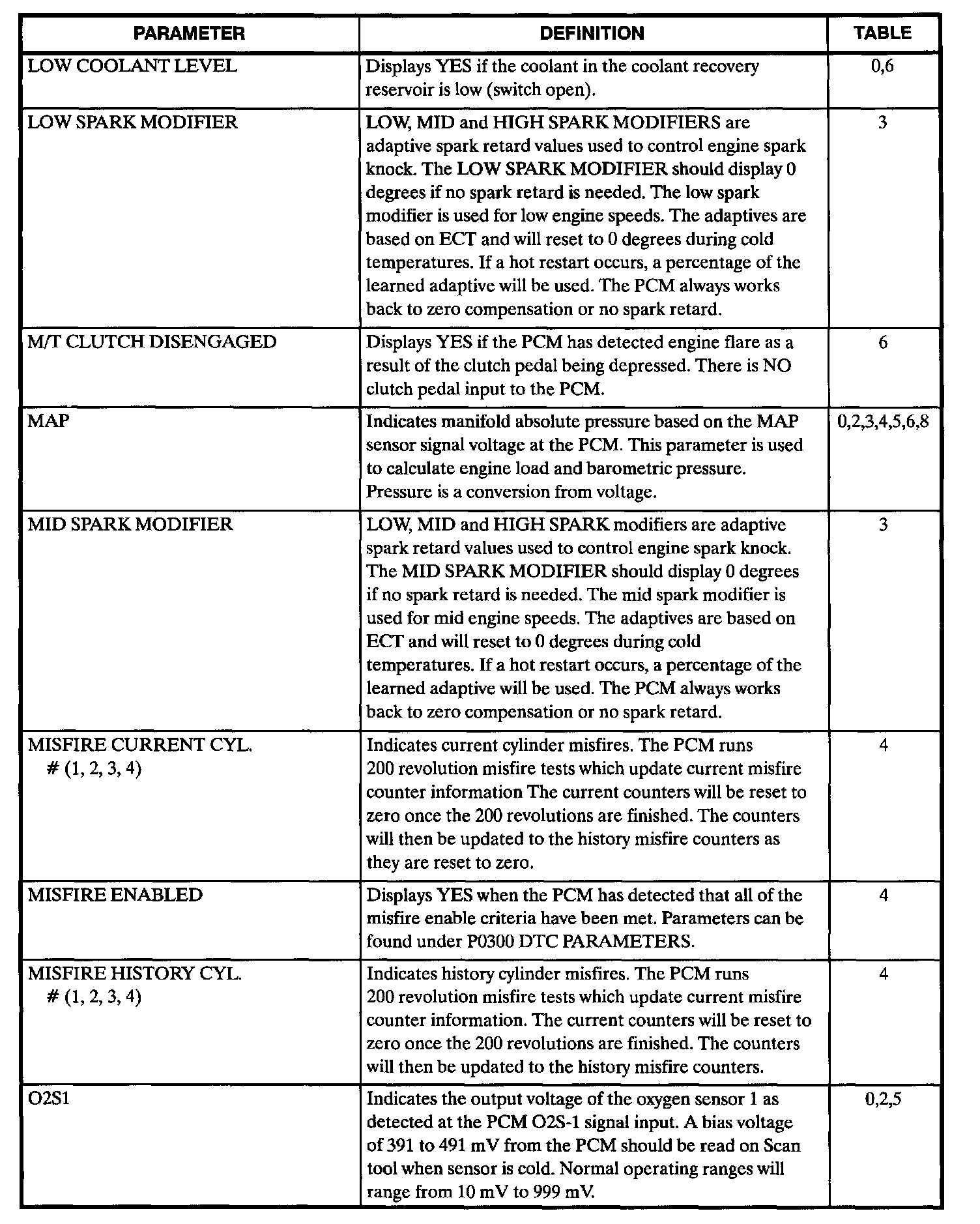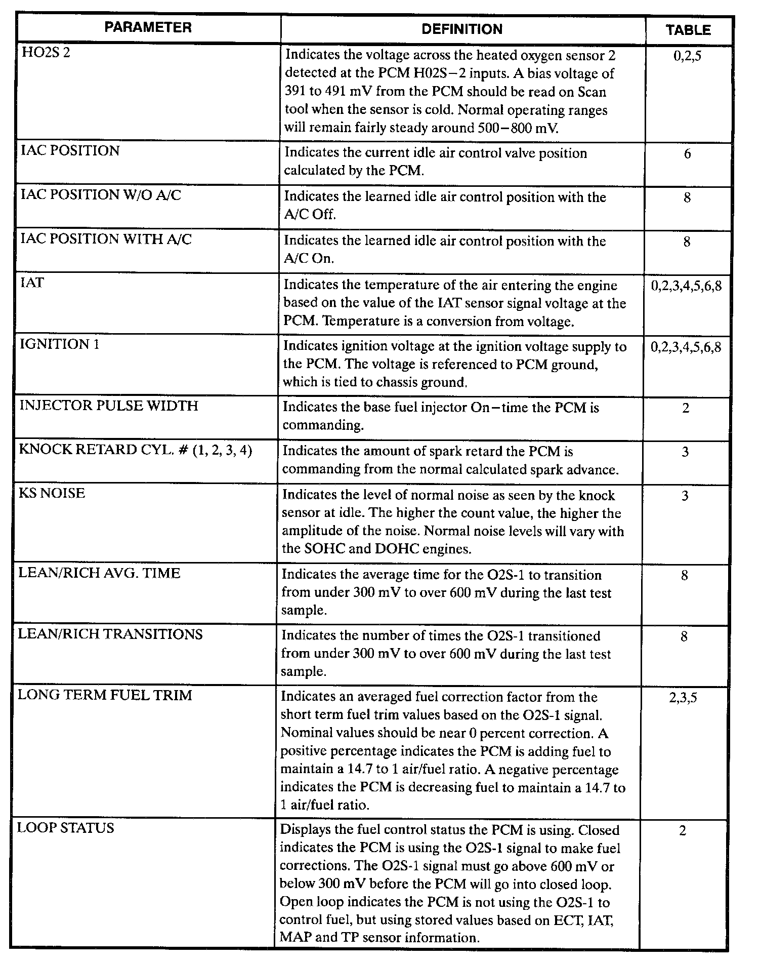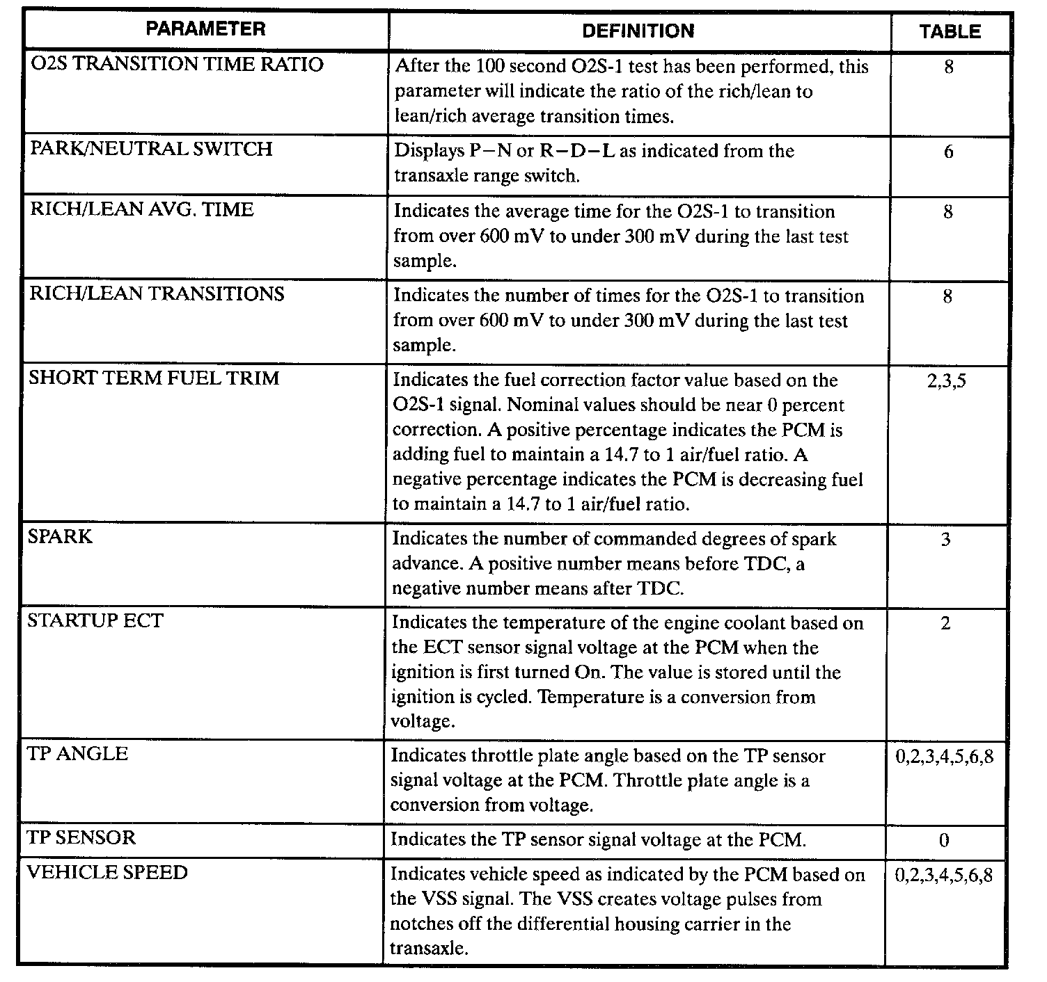 Scan Tool Data, Normal Values and Definitions