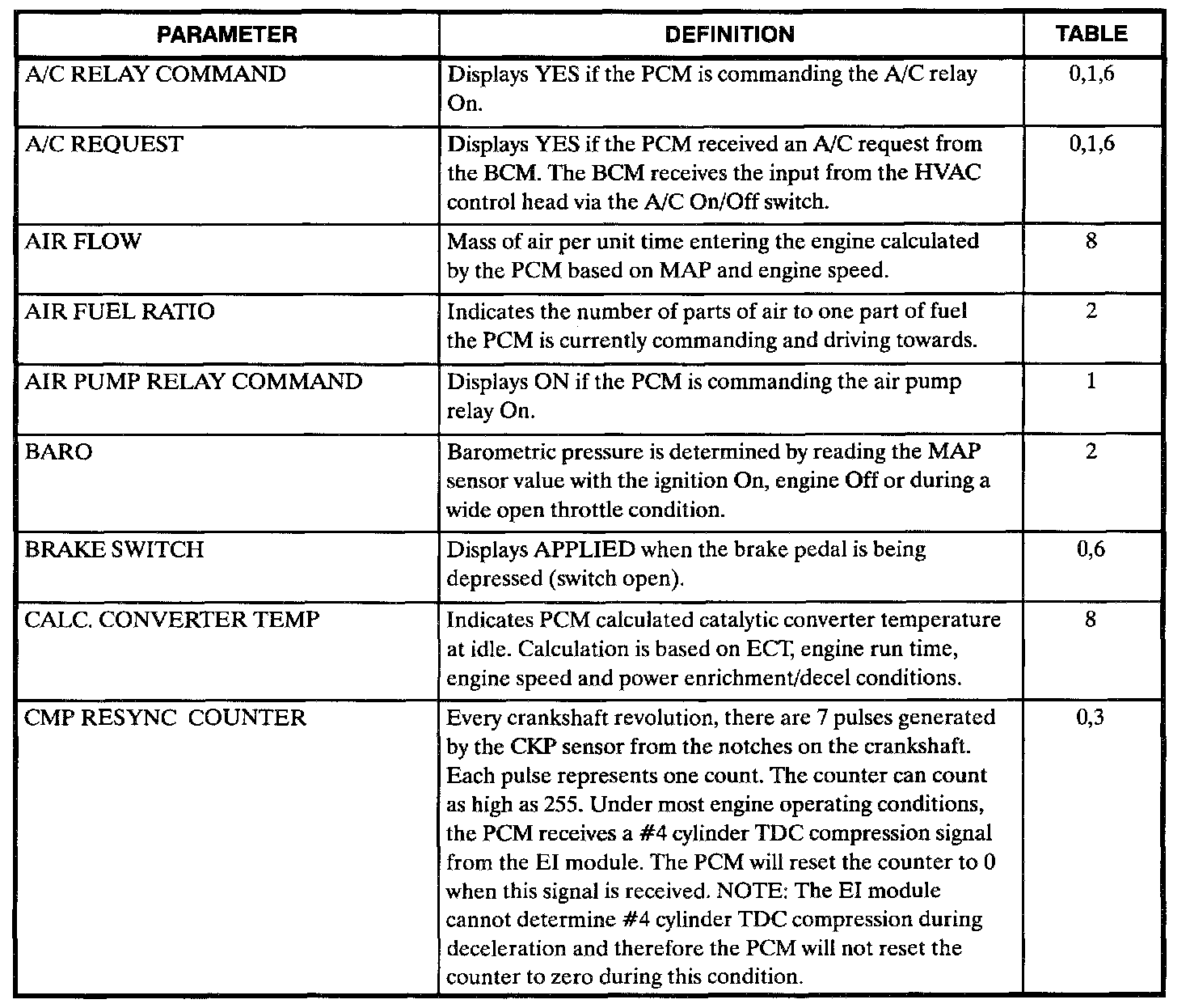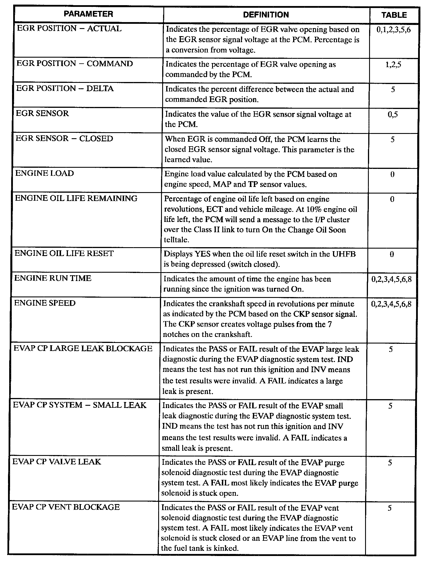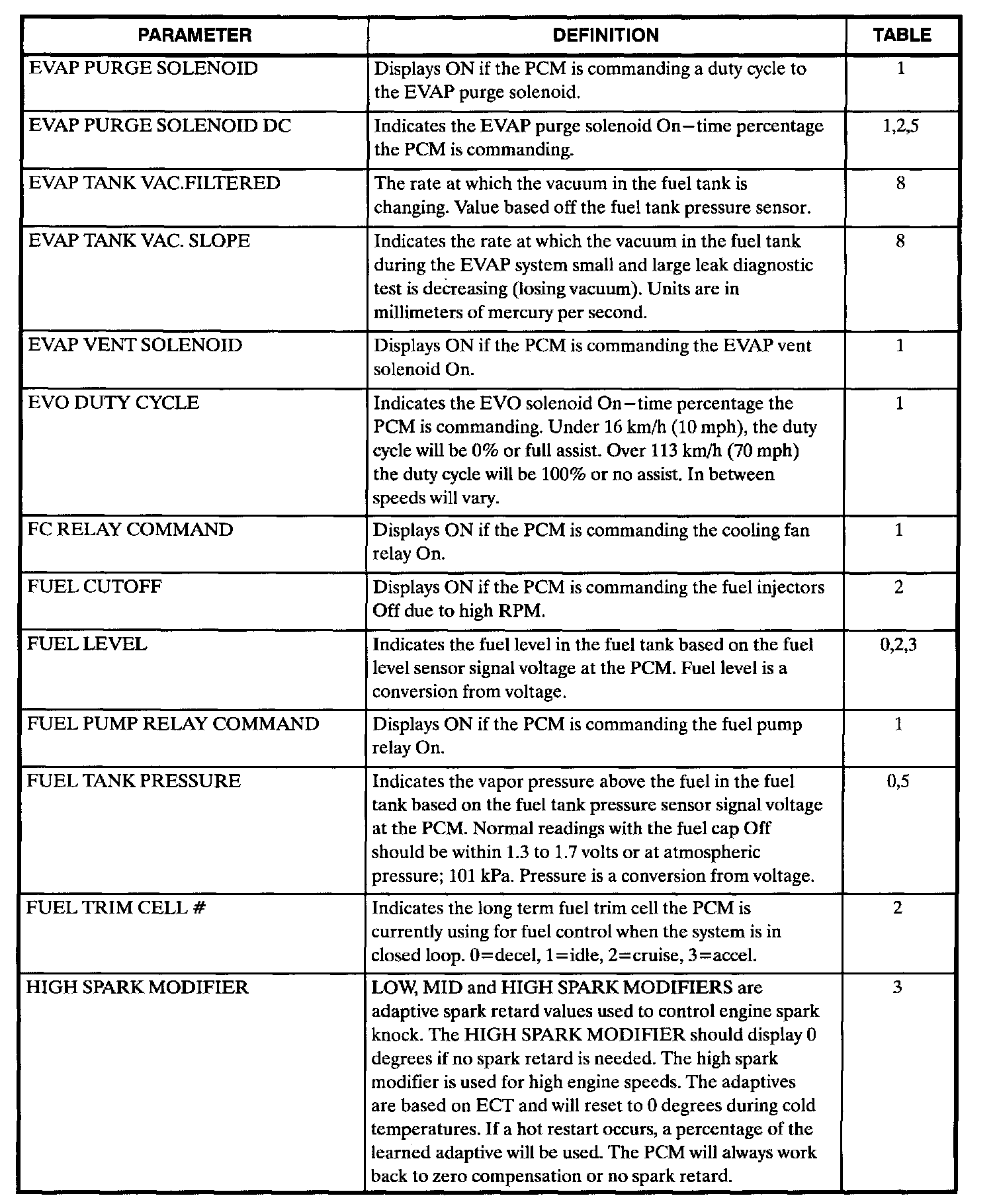 Scan Tool Data, Normal Values and Definitions