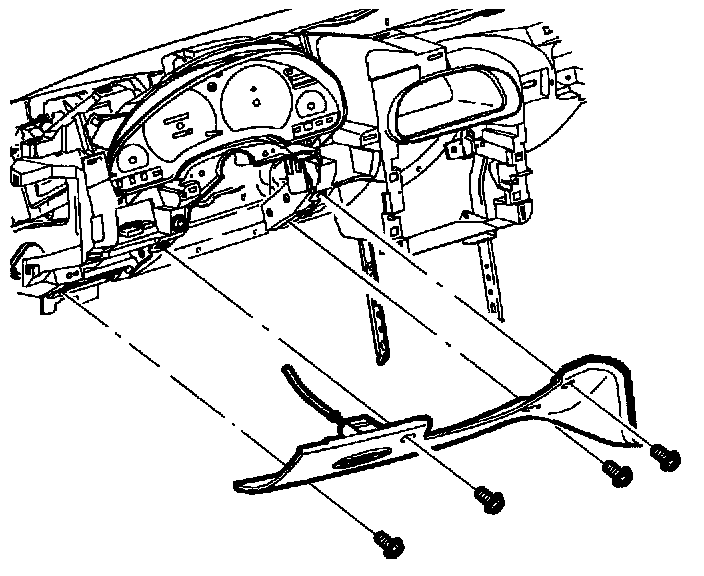 3. Remove screws and loosen screws holding data link connector near the bottom of steering column filler panel assembly. Pull steering column filler panel assembly forward and set down.
