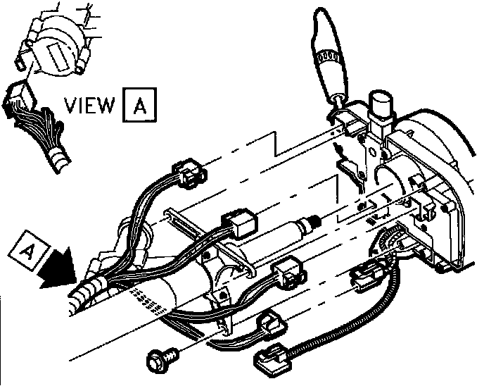 7. Disconnect ignition switch electrical connector at right steering column upper support bracket.