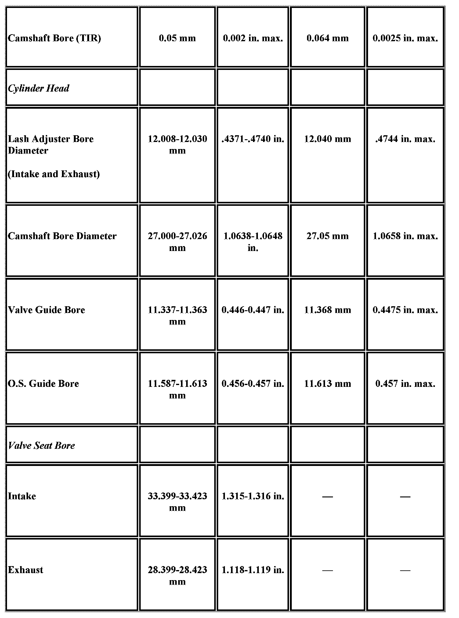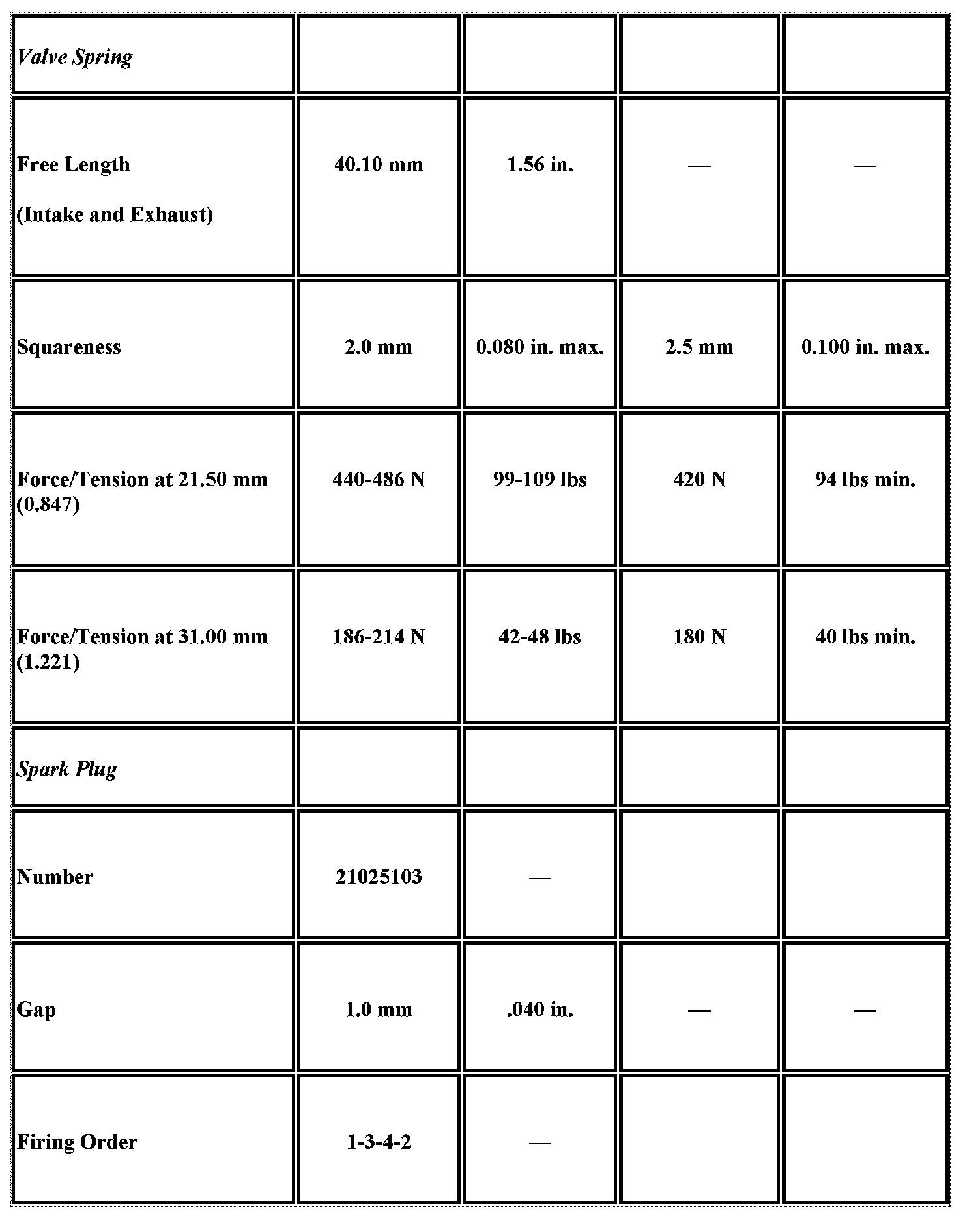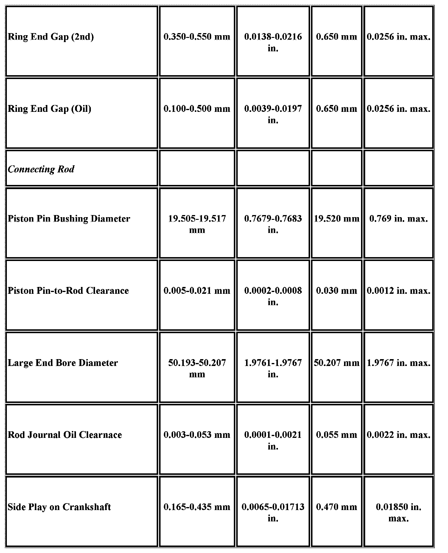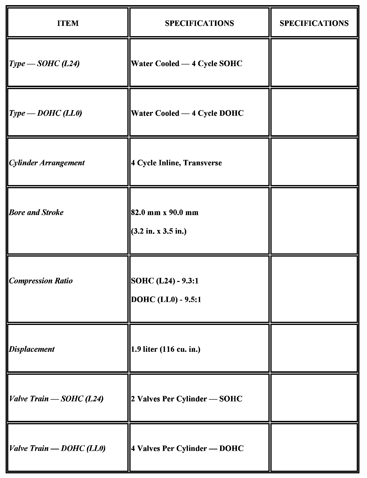 Engine Mechanical Specifications