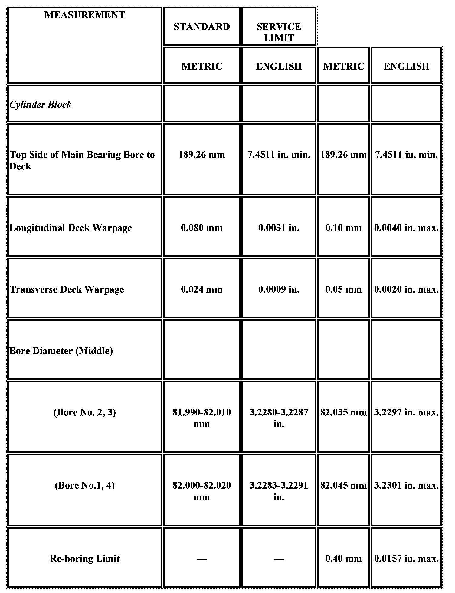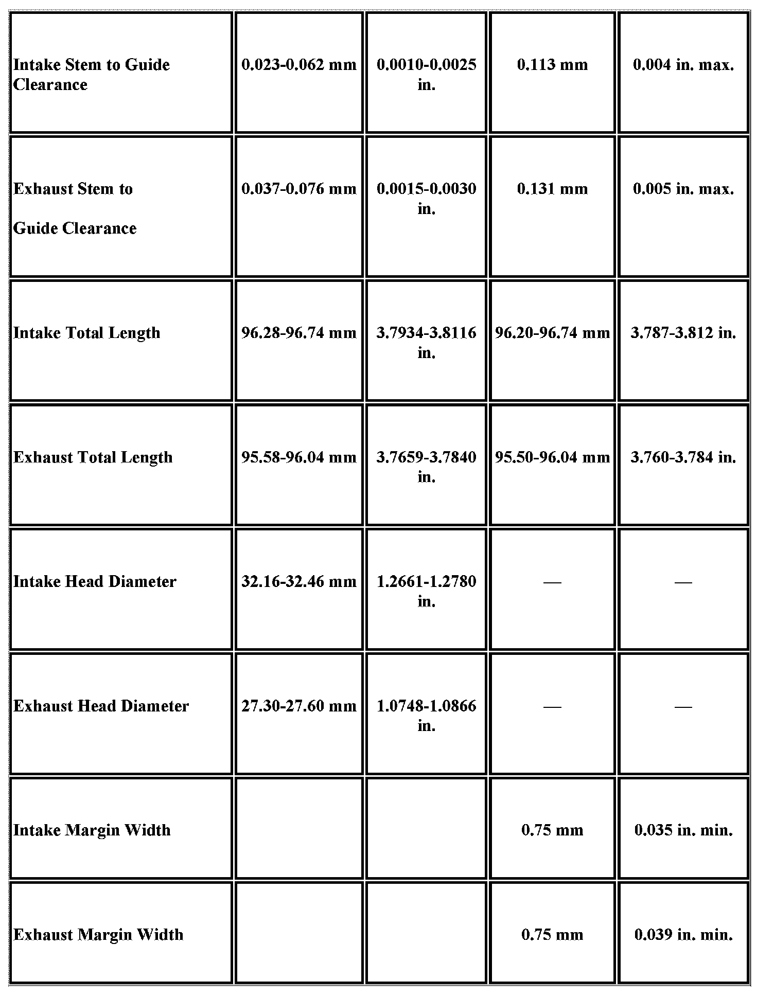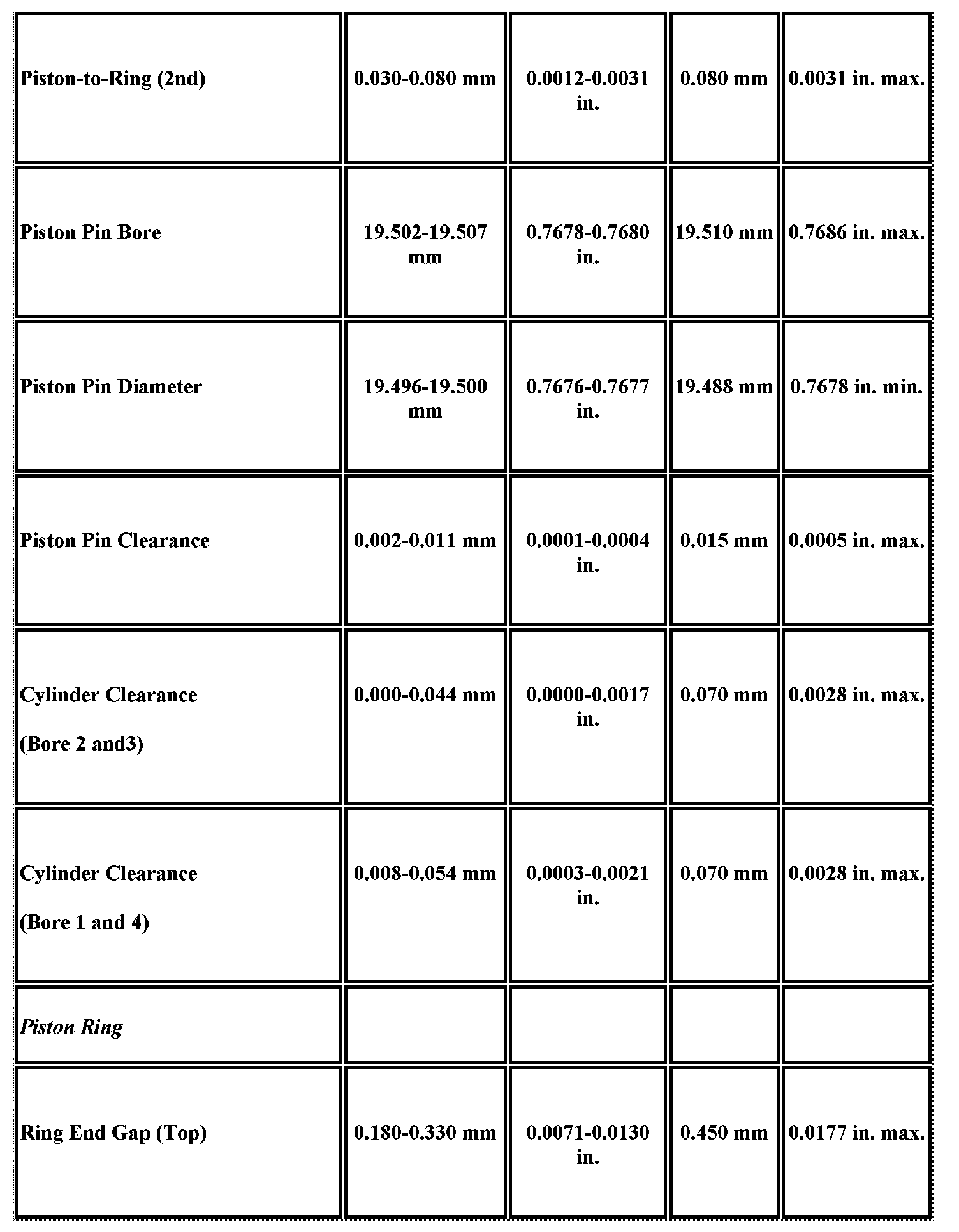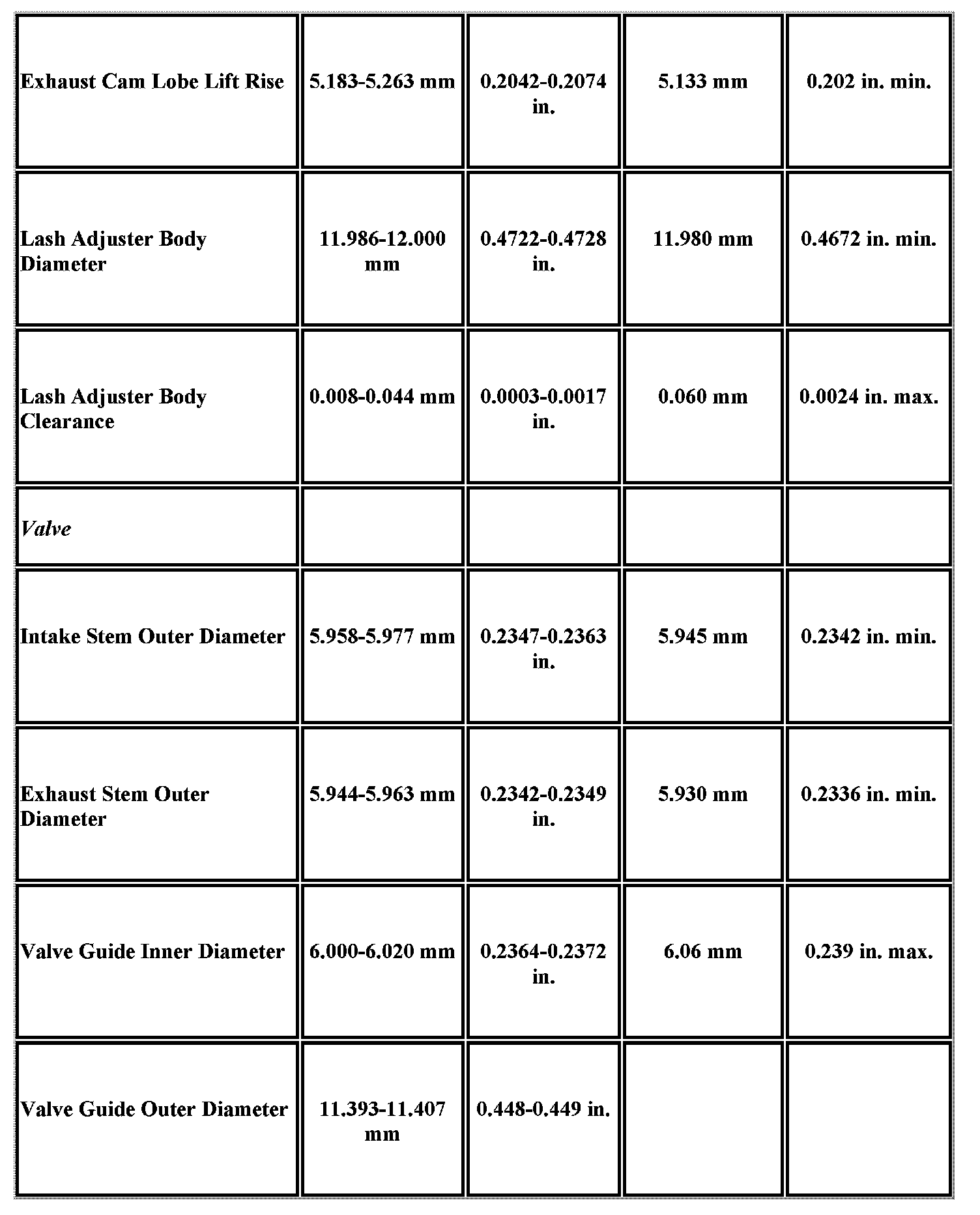 Engine Mechanical Specifications