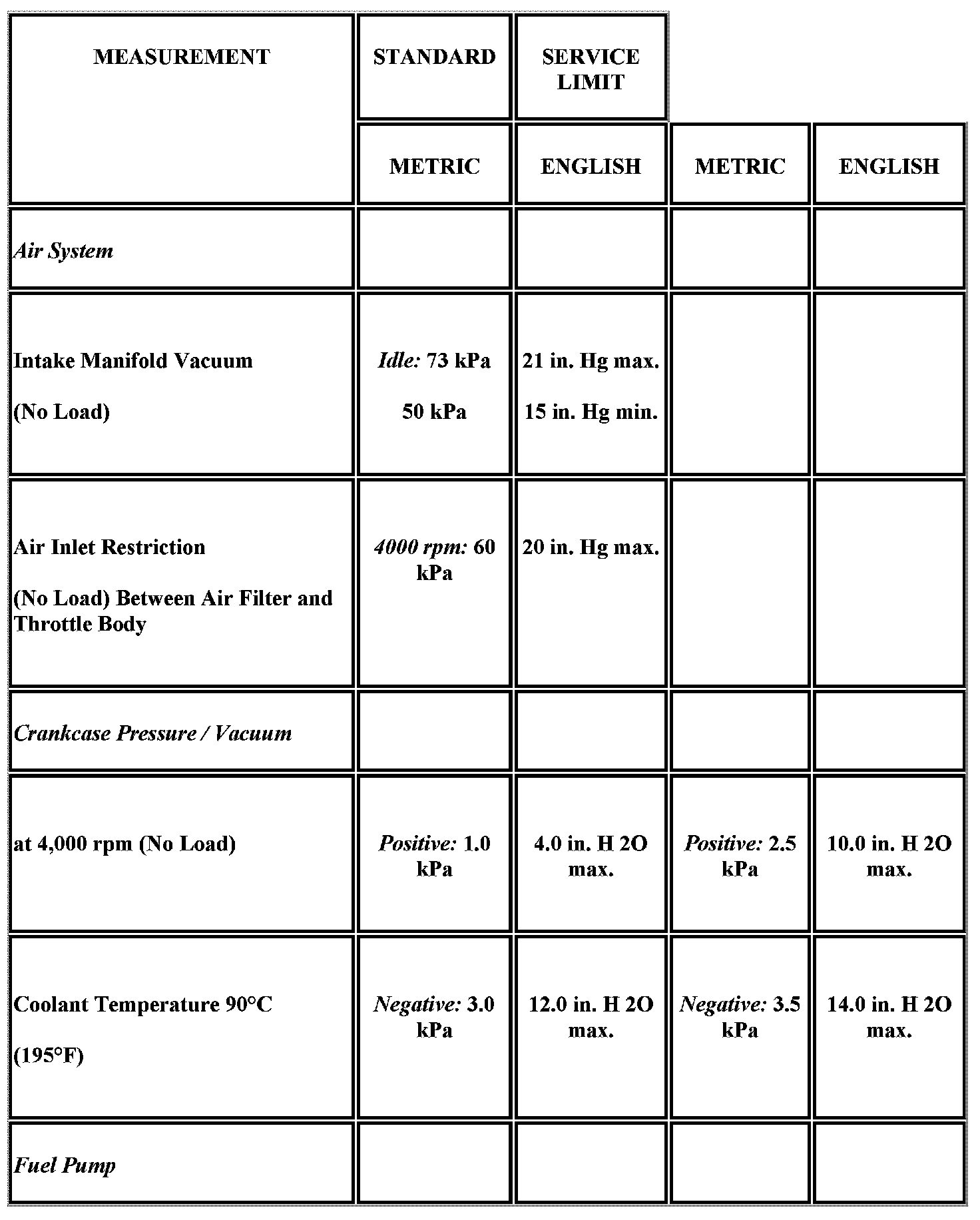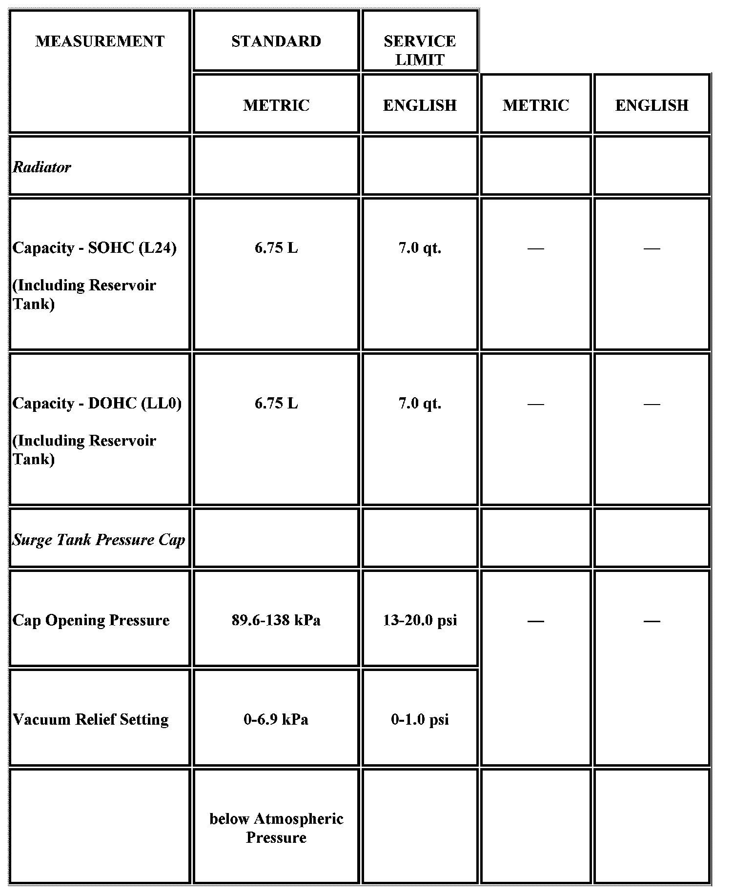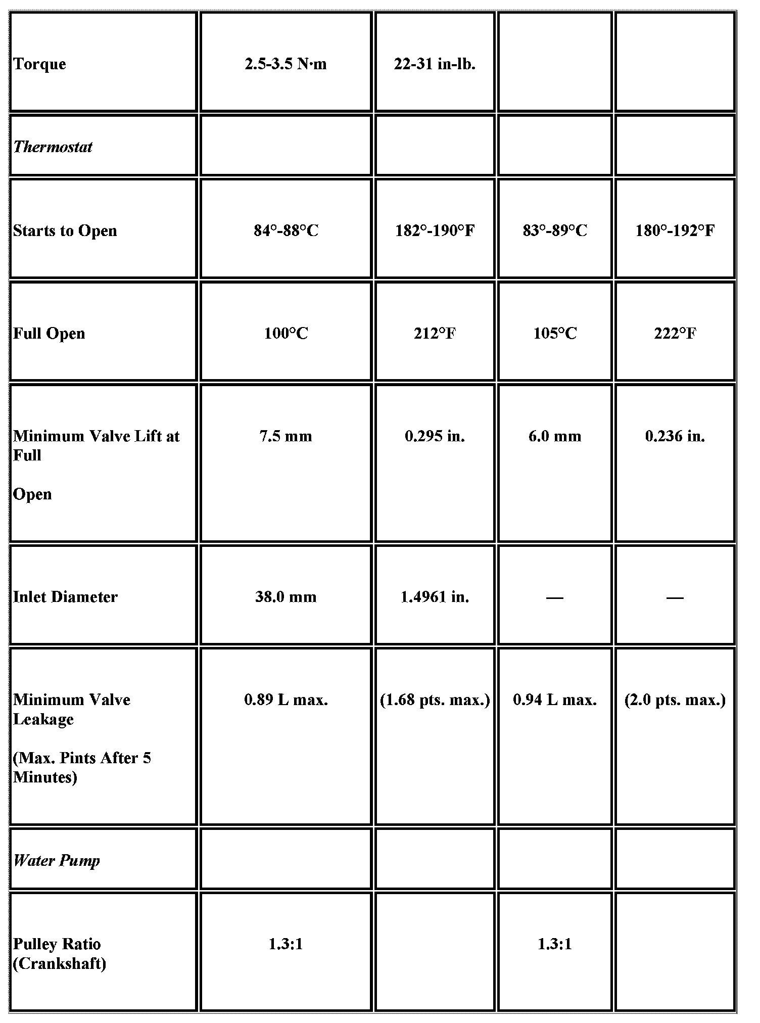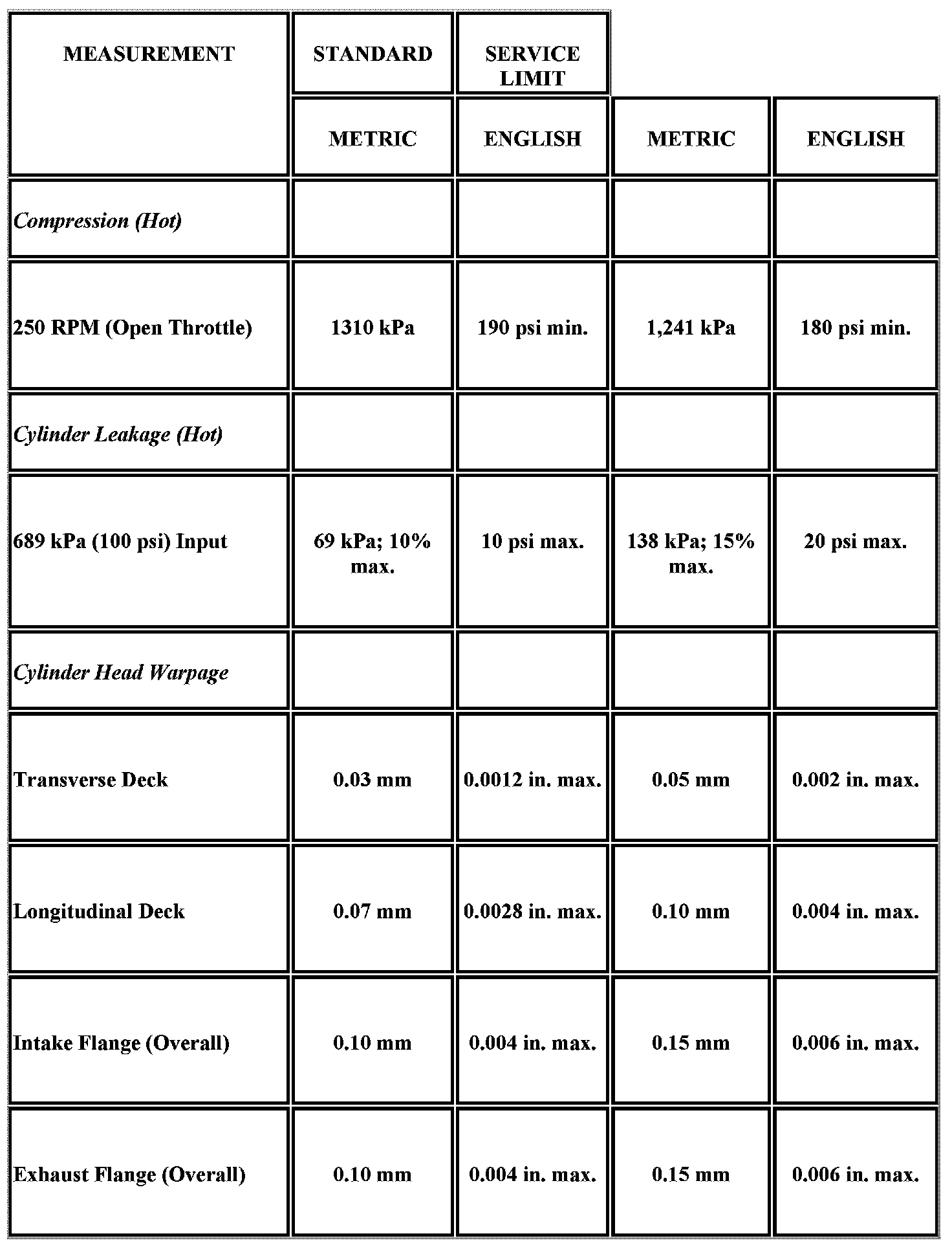Engine Mechanical Specifications
