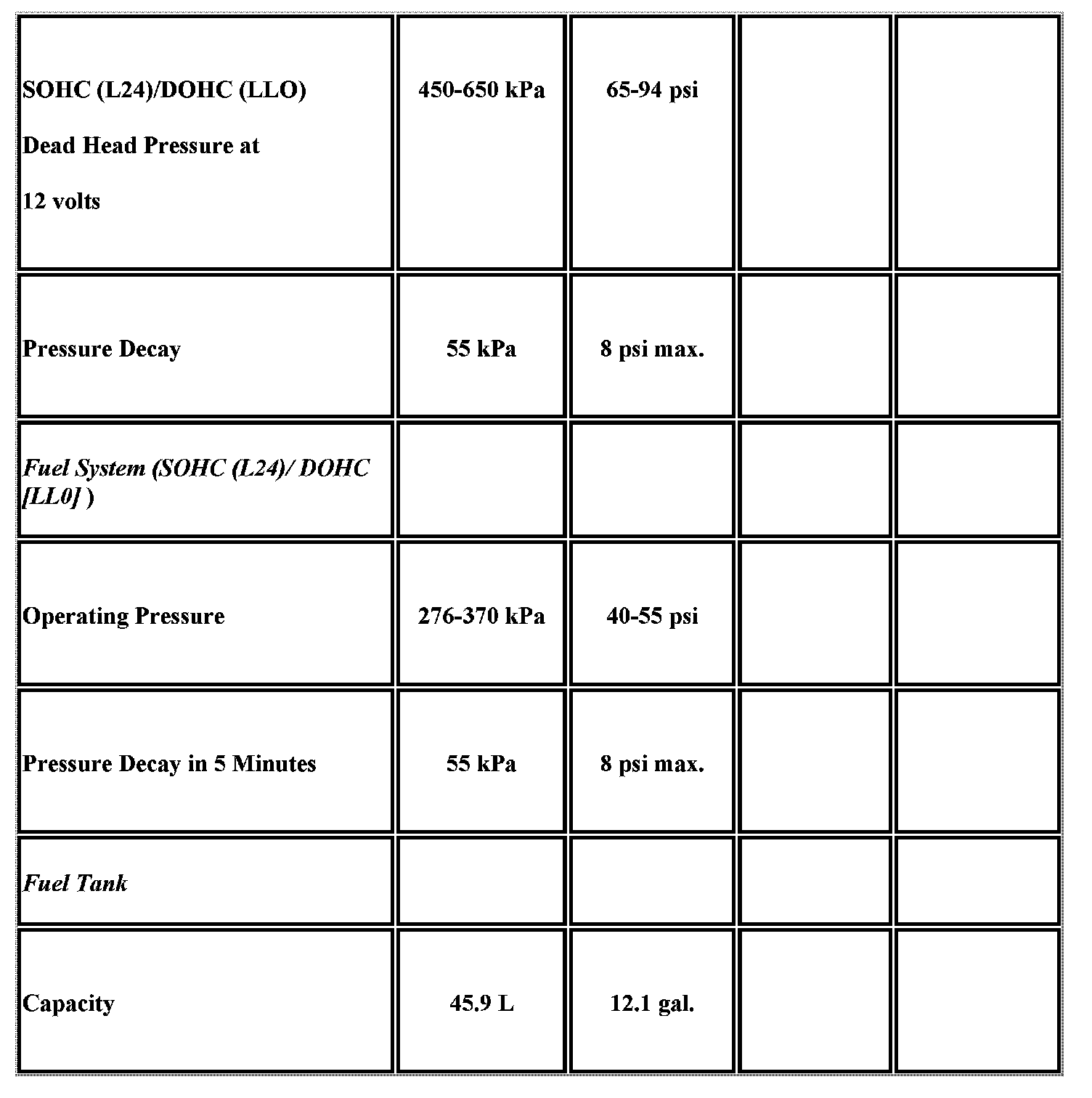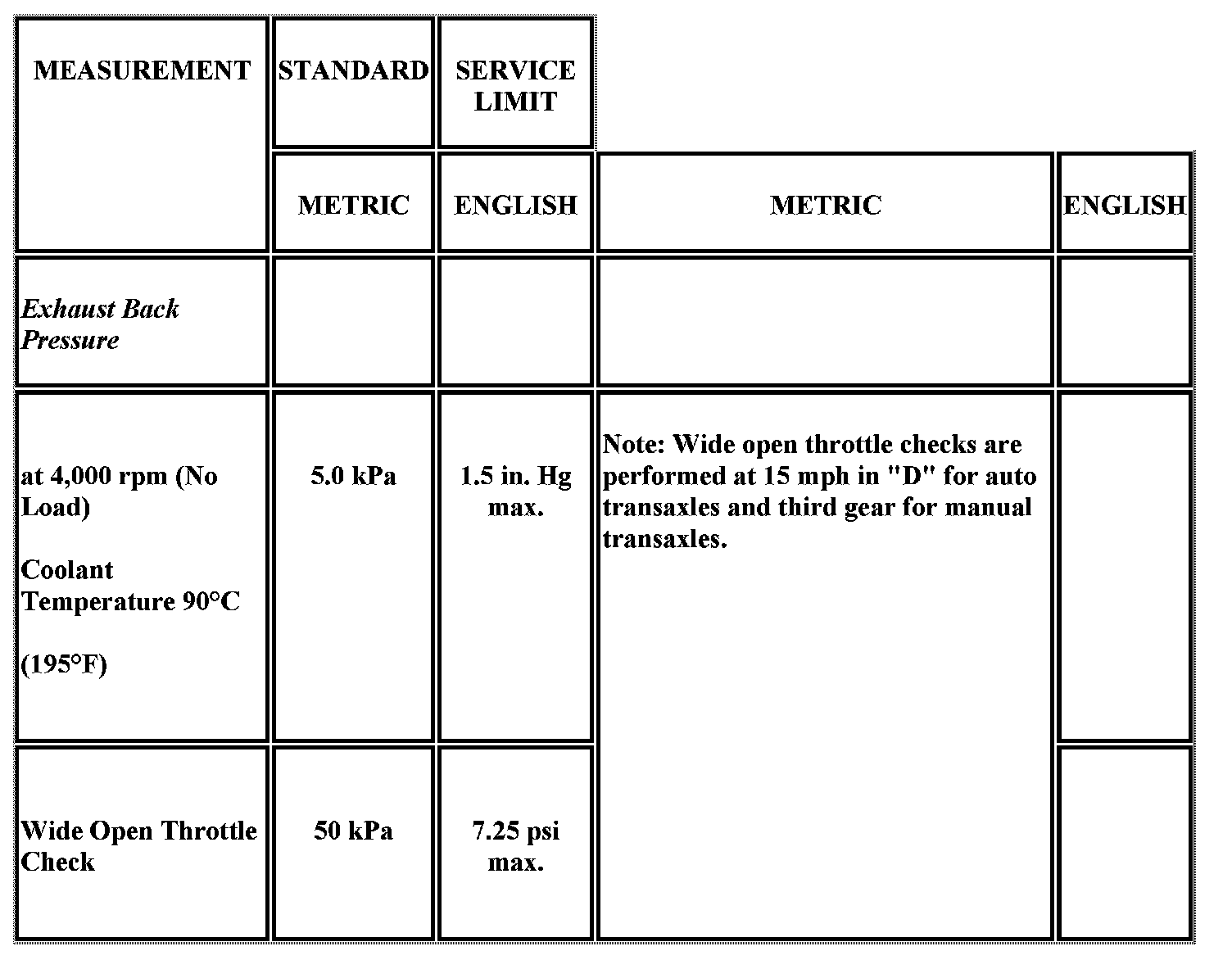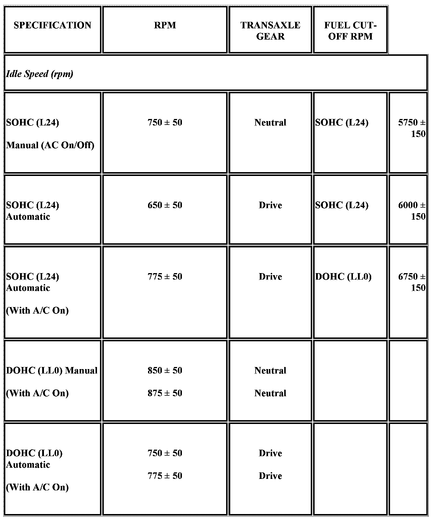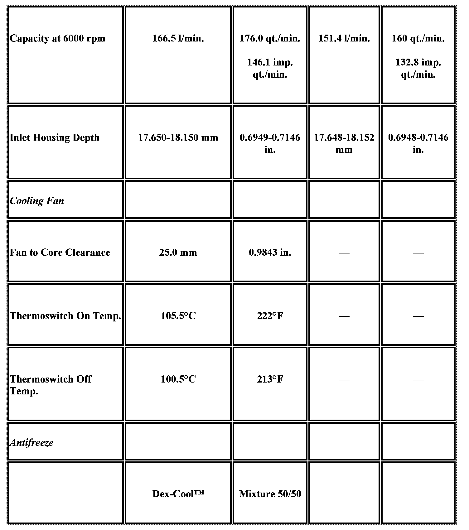 Engine Mechanical Specifications