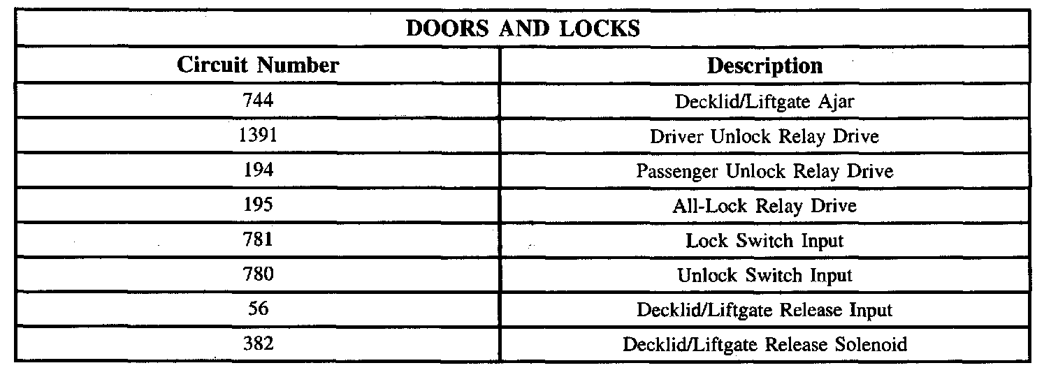 Doors And Locks Circuit Chart