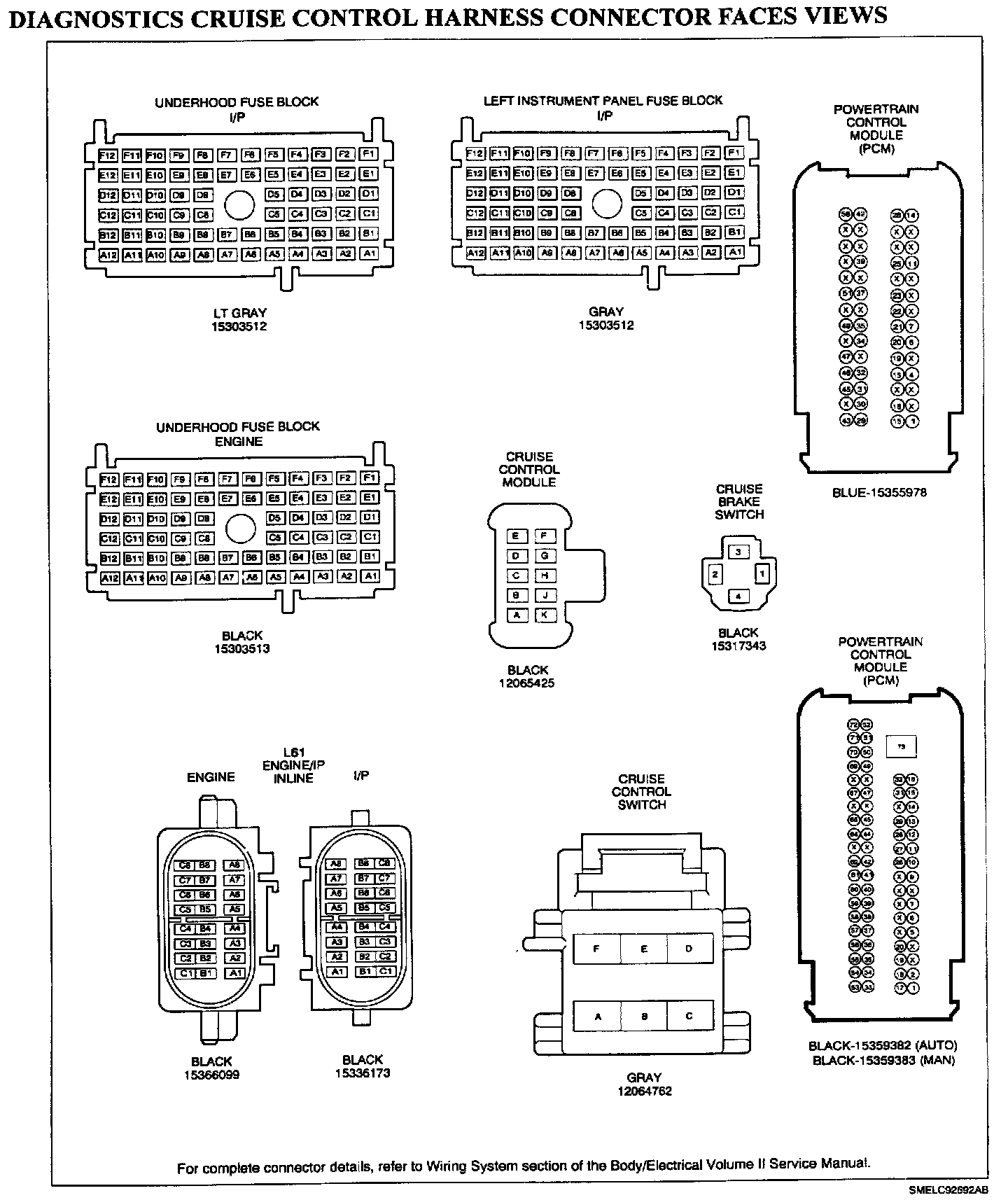 The purpose of this bulletin is to update the "Cruise Control Harness Connector Face Views" in the Cruise Control section and "Powertrain Control Module (PCM) Connector Face Views" in the Engine/Emissions section of the 2002 L-Series (L61) Engine Service Manuals.