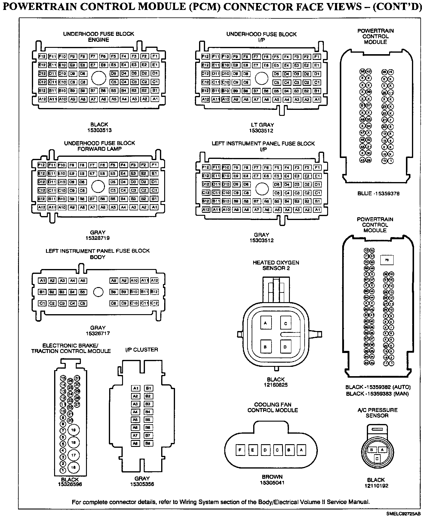 Also updated is "Harness Connector Faces" in the Wiring section of the 2002 Body/Electrical Volume II Service Manual.