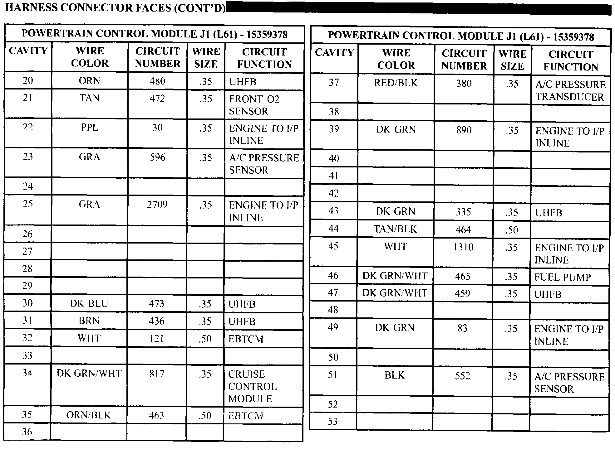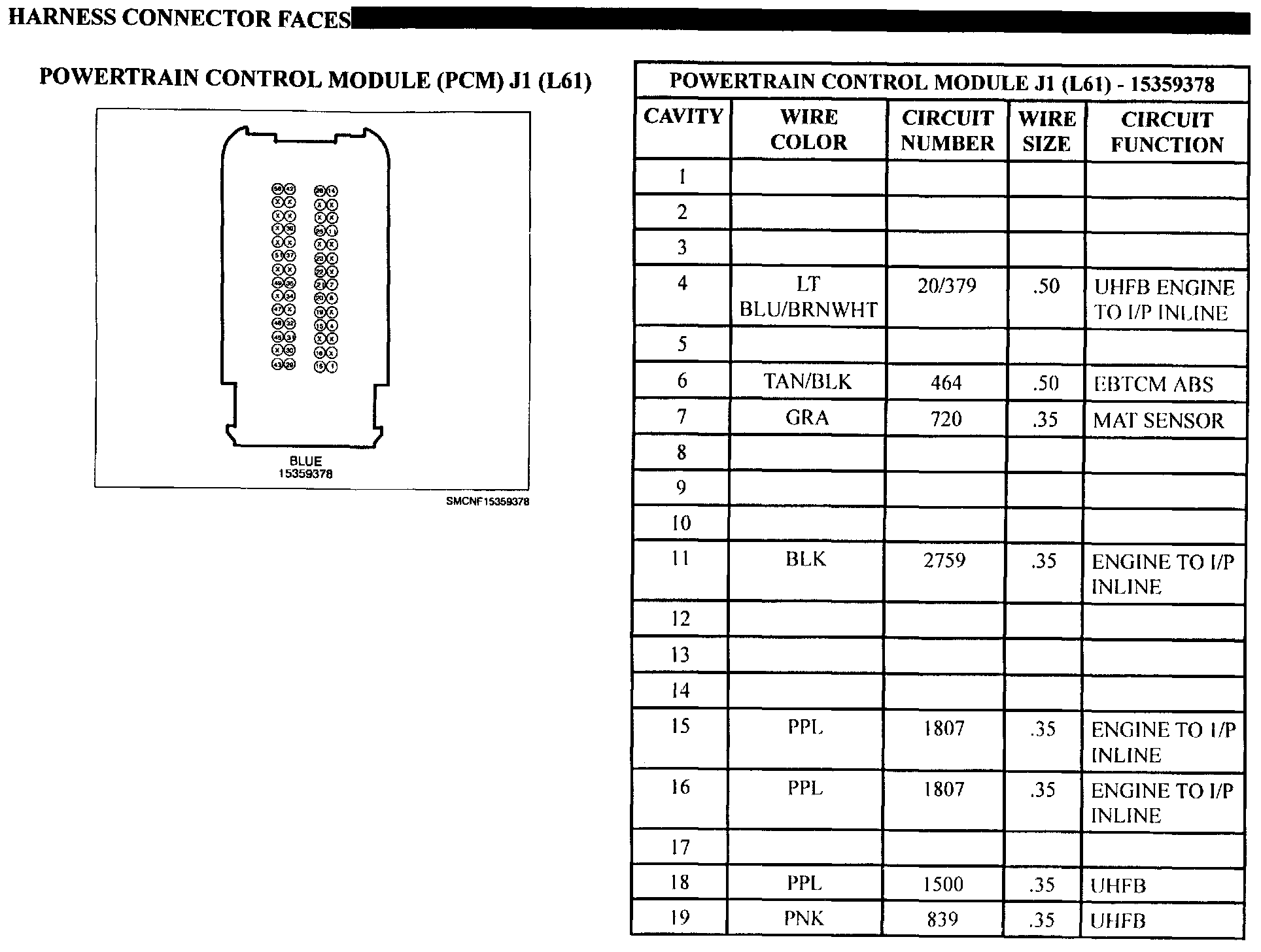 ^ Cross out page 696 through 698 "Harness Connector Faces Powertrain Control Module (PCM) J2 (L61)" chart with marker or pen.