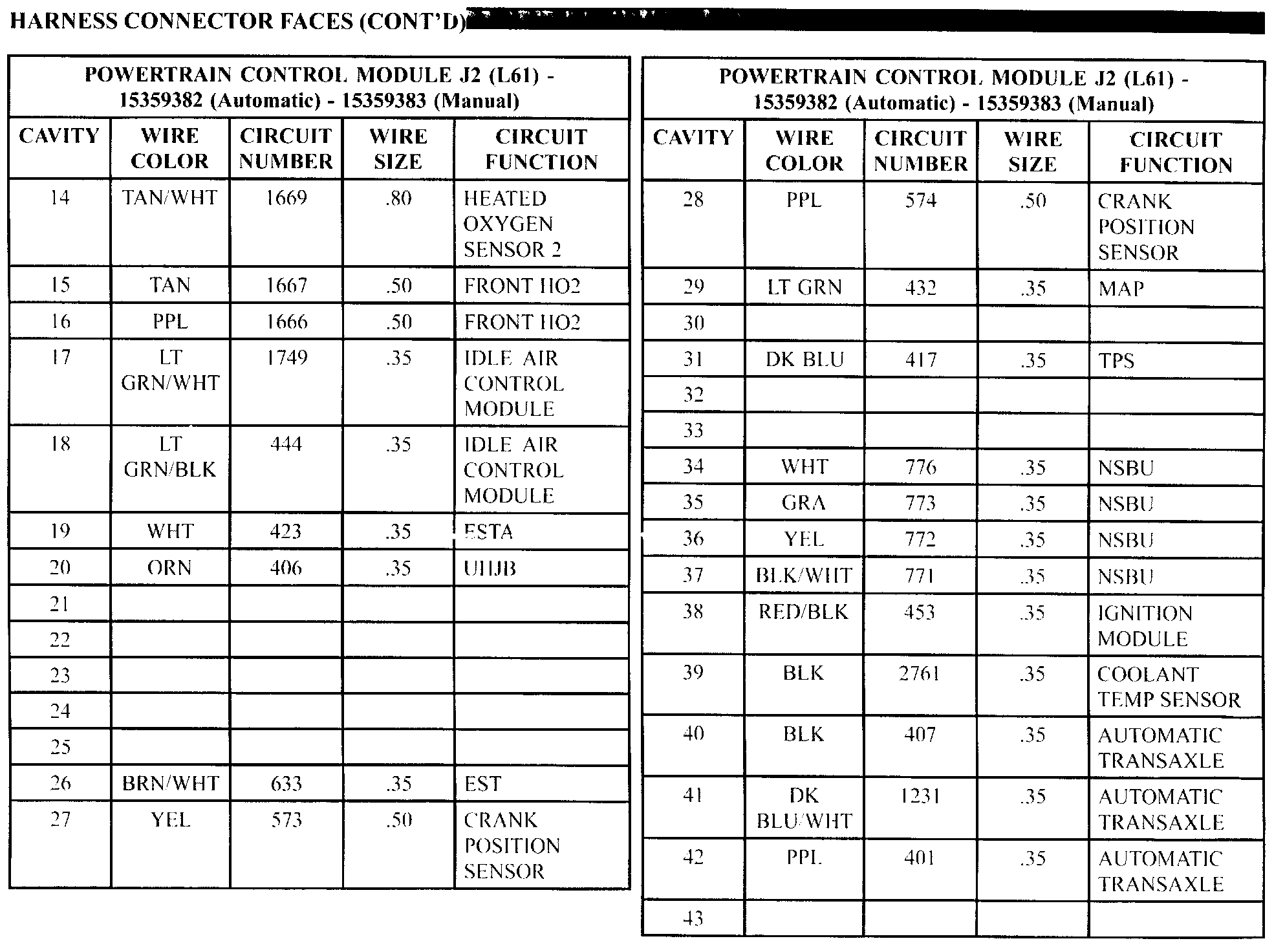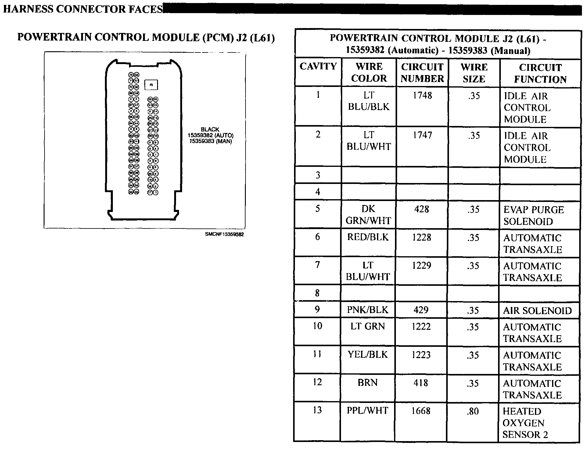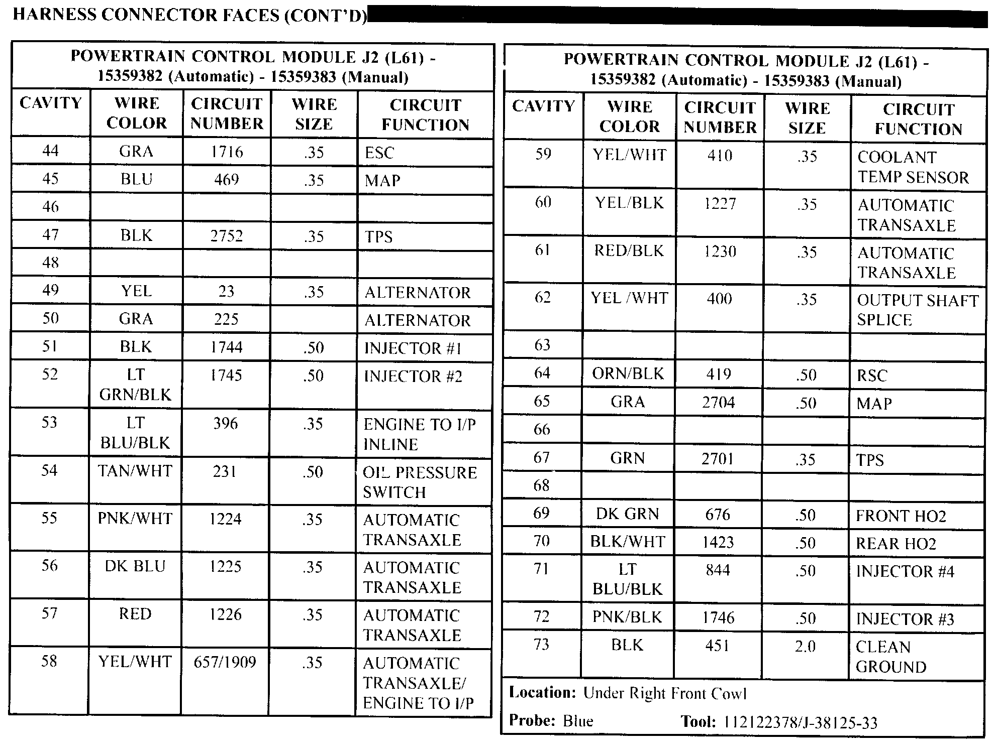 ^ Cross out pages 694 and 695 "Harness Connector Faces Powertrain Control Module (PCM) J1 (L61)" chart with marker or pen.